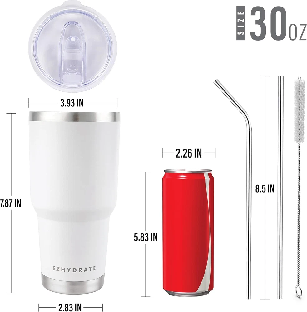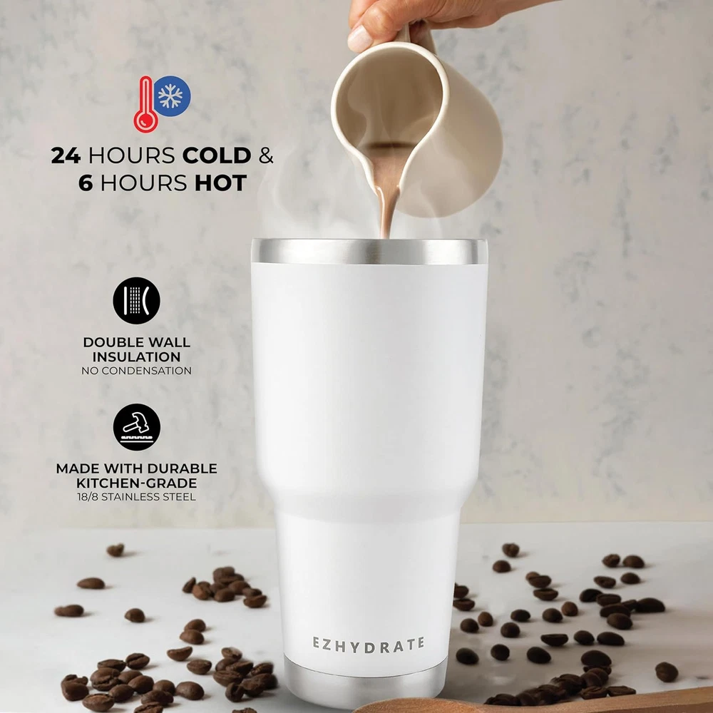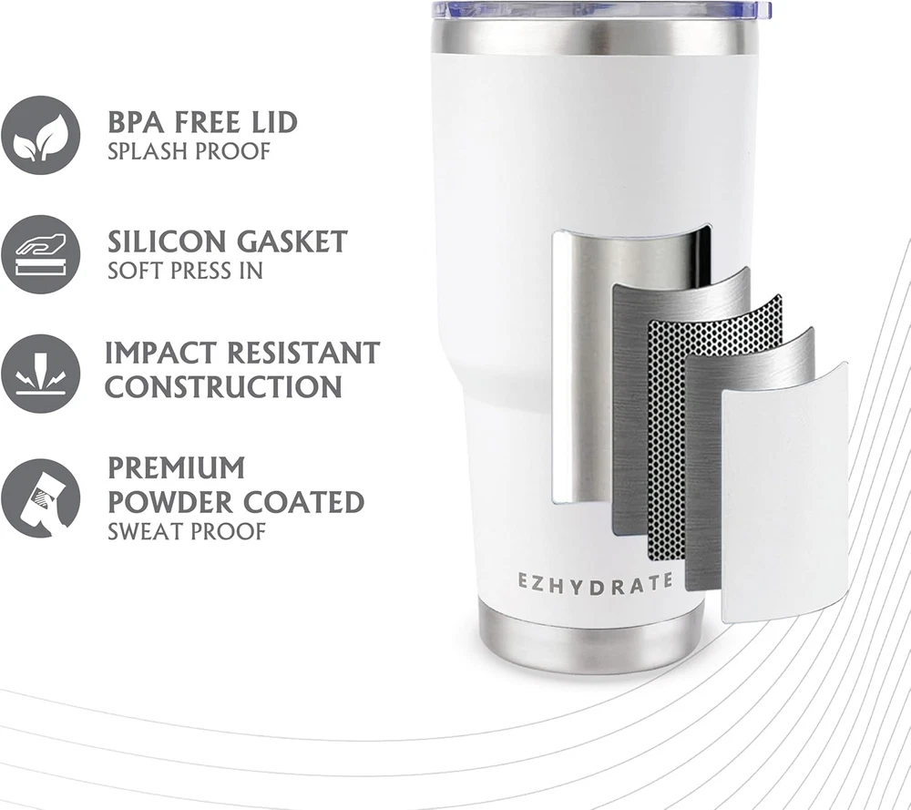 Store New Arrivals Add to Favorite View Feedback Contact 30 Oz Tumbler with Lid - Stainless Steel Vacuum Insulated Coffee Travel Mug Double Wall Durable Leak Proof BPA Free Ice Coffee Thermal Cup -White Description Item model number EzSip 30oz Style EzSip 30oz Number of Items 1 Pattern Solid Theme Modern Unit Count 1.0 Count Manufacture Year 2024 Product Dimensions 4.5"W x 10"H Package Type Standard Packaging Age Range (Description) Adult Finish Type Matte Specific Uses For Product Cold Drinks, Hot Drinks Included Components Tumbler, Lid, Straw Reusability Reusable Item Weight 14.9 ounces Size 30 oz Material Feature Insulated Occasion Party, Holiday Special Feature Condensation Resistant, Vacuum Insulated, Safe Spill Proof Material Type Free BPA Free Color White Global Trade Identification Number 00850048072718 Shape Round Fits Cupholder Recommended Uses For Product Travel Product Care Instructions Hand Wash Only Material BPA, Insulated Capacity 30 Fluid Ounces DOUBLE-WALLED VACUUM INSULATED COFFEE TUMBLER: EzHydrate 30oz Coffee Tumbler Mug is with Double-Walled vacuum technology which can keep coffee warm for 6+ hours, beverages cold for 12+ hours. You can enjoy your favorite drink for a long time, it's so great! 30oz COLOR TUMBLER: Each thermal cup has a variety of options. Different combinations to experience different effects, free to follow your heart. The surface of the thermal coffee mug is polished and powder coated, and the mug has a better texture. There is also a sweat-proof design, which is better for hand grip. In addition, our 30oz thermal mug is suitable for most car cup holders, and you can use it very comfortably. BPA FREE AND PREMIUM STAINLESS STEEL: Stainless Steel Tumbler Cups are made of Food-Grade 304 18/8 stainless steel and the lid is made of BPA-Free materials. Which is non-toxic and healthy. The interior is electropolished. The outer layer is coated with anti-sweat powder to keep your tumbler dry and clean. HANDWASH ONLY AND WORRY-FREE CLEANING: The coffee travel mug is easy to hand wash. So convenient, no need to worry about cleaning. The insulated tumblers are suitable for many occasions, can be used for travel, party, garden, beach. What's more is the high quality coffee mug which can be used as Christmas, Thanksgiving, Father's Day, Mother's Day gift for women or parents. PERFECT FOR CAR CUP HOLDERS: Carefully designed travel tumbler fits most car cup holders, large capacity coffee mug is perfect for your journey and travels around the world with you. Feel free to pick up the tumbler and hold it comfortably in your hand. Product Description ABOUT US We offer the best prices around on high quality products. Our E-store includes media such as books, movies, music and games while offering electronics, toys, sporting apparel, clothing, tools, general home, garden items and more. SHIPPING We are always working hard to ensure your package arrives as soon as possible. Please understand that some factors like weather, high postal traffic, and the performance of shipping companies are outside of our control. We offer free shipping to the lower 48 states and ship within 2 business days of payment, usually sooner. We do not accept P.O. Boxes. Please provide a physical address. For shipping outside of the continental USA, we only use eBay's Global Shipping Program.The item is shipped to KY and then sent to the rest of the world. International customers are responsible for all duties and taxes. Continue to check out in order to calculate costs for shipping the item to your country. Messages regarding eBay's Global Shipping Program MUST be directed at eBay EXCLUSIVELY. RETURNS We offer a 30-Day Return Policy on items which you are not completely satisfied with. You have the option for a full-refund or an exchange of the item. No returns are available on items shipped outside of the USA. PAYMENT We accept PayPal. CONTACT US This page content is yet to come Please ad us to your favorite seller and visit again later Thank You CUSTOMER SATISFACTION We try our very best to make sure every customer is completely satisfied. If there's a problem, message us! We're happy to help. WE ACCEPT Copyright © 2021 AutoDS. | All Rights Reserved