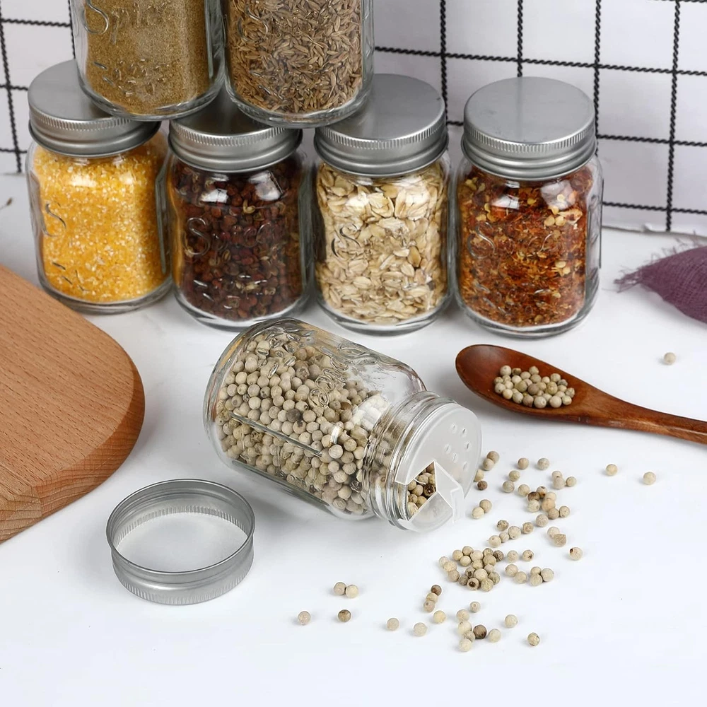 30 Pack 4oz Glass Mason Spice Jars Bottles, Empty Round 30pcs, Clear Product Details Product Dimensions: 2"L x 2"W x 3.5"H Recommended Uses For Product: Spices Special Feature: Airtight Container Shape: Bottle Is Dishwasher Safe: Yes Material Type Free: Lead Free Item Package Quantity: 1 Item Weight: 4 Pounds Product Care Instructions: Dishwasher Safe, Microwave Safe Item Volume: 118 Milliliters Unit Count: 30.0 Count Is Microwaveable: Yes Item Form: Bottle Manufacturer: Mcupper Size: 30pcs Closure Type: Screw Item Weight: 4 pounds Pattern: Solid Shape: round Number Of Pieces: 1 Special Features: Airtight Batteries Included?: No Batteries Required?: No Number of Sets: 30 Brand: Mcupper Color: Clear Material: Glass, Metal Material Feature: lead free Capacity: 4 ounces High Quality: Our Mini Mason Spice Jars are made of high-quality lead-free durable glass. Clear glass let you have a clear look of spices. Bottle capacity: 4 ounces, height: 3.5 inches, bottom diameter: 2 inches. Classic Design: These glass mason jars with modern design of round shape and top fit any spice rack, cabinet, storage box, drawer or kitchen. So that all your spices can be neatly and efficiently organized. Airtight: Exclusive sift and pour shaker lids matching metal airtight caps which means your herbs stay fresher longer. Package Included: 30 Pack 4 oz Glass Mason Spice Jars with Metal Caps and Plastic Sift & Pour Shaker Caps, 30pcs Black Blank Labels, 1pcs Chalk Marker, 2pcs Brush, 1pcs Silicone Collapsible Funnel. Multi Purpose: There is no limit to the variety of uses for these glass jars. You can use it for seasoning storage, party gifts, crafts, decoration items, etc. 30 Pack 4oz Glass Mason Spice Jars Bottles