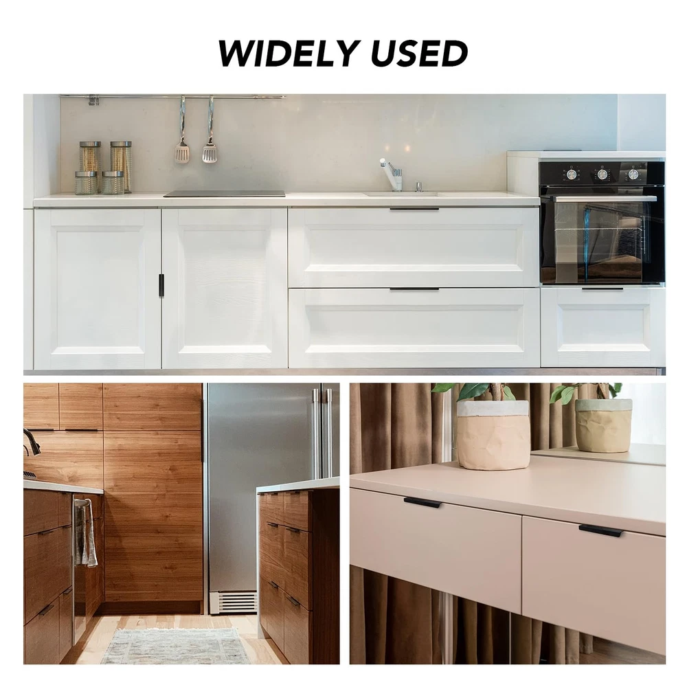 aims at taking the best home revitalization experience to our customers. Product Features: Material: finger edge pulls are made of high quality aluminium material, light weight with strong quality. They are waterproof and anti-rust with a long service life. Easy to Install: Simply use the screwdriver provided to attach the handle and the installment will be finished in seconds. Widely Used: These black closet finger pulls give your cabinets a modern style with elegant touch. They worked perfectly in your kitchen or bathroom renovation to deliver modern yet classic and simple look. Product Parameter: MEASUREMENT : Screw Hole Center: 128mm(5inch) Overall Length: 150mm(5.9inch) Width: 31mm(1.22 inch) Height: 17mm(0.67inch) Accessories: Self-tapping screws (2 for each handle) Screwdriver*1 Measurements: Screw Hole Center: 128mm(5inch); Overall Length: 150mm(5.9inch); Height: 17mm(0.67inch); Width: 31mm(1.22 inch) Comprehensive Customer Support: If you have any questions before or after your purchase with our black concealed pulls, feel at ease to reach out to us. We will address your concerns within 24 hours Material: finger edge pulls are made of superior aluminium material, light weight with strong quality. They are water-resistant and anti-rust with a long service life Easy to Install: Simply use the screwdriver and the self-tapping screws provided to attach the handle and the installment will be finished in seconds Widely Used: These black closet finger pulls give your cabinets a modern style with elegant touch. They worked in your kitchen or bathroom renovation to deliver modern yet classic and simple look