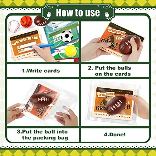 Return Policy Fast Delivery Trusted seller 30 Pack Valentien's Day Cards for Kids with Mini Sports Balls for School Classroom,Valentine's Gifts Exchange, Squeeze Foam Balls for Valentine's Party Favors,Valentine's Prizes for Kids Product Description SUPER VALUE PACK! Our Valentine's Day Card Gift Set for kids includes 30 valentine's day cards and 30 mini sports balls! These mini foam balls were made with great quality materials and feel good for squeezing. Squeeze one of the sport ball, all your stess will melt away! This Valentine's squeeze balls will let your kid give more than a normal card. WELL-DESIGNED VALENTINE'S CARDS. Each design of the valentine's day cards has both a sport theme and a unique punchline of greeting to match the ball, makes the cards more attractive. The valentine's day cards are thick, double-sided printed with beautifully patterned. The exchange cards with mini squeeze balls gift set will be a hit among kids. FUN VALENTINE'S GIFT FOR KIDS. Valentine's greeting cards with sport balls sets are perfect for kids classroom exchanges, preschool or elementary school Valentines parties, Valentine's event, or any Valentine's game prize, love notes, party favor supplies and more! Ideal Valentine's day gift for boys and girls. This Valentine's Day Party Favor Toy will bring joy and happiness to everyone on Valentine's day. EXCHANGE GIFT AND SHARE LOVE. All kids will love novel Valentine's day gifts. Give out the valentines cards is a fun way to encourage kid's social skill development and teach kids to share, love and make friends. A great chance to express love to families, friends and classmates. GUARANTEED PURCHASE - For any reason if you are not completely satisfied with your purchase, please feel free to message us through "contact sellers". We will reply to you within 24 hours. Shipping Returns Payment Shipping Shipping is FREE to all addresses other than APO/PO boxes in the lower 48 states. All our stock ships from US-based warehouses. Shipped via USPS or UPS (depending on location and package weight) Unless stated otherwise, all orders will ship within 24-72 hours of your payment being processed. Check our feedback to see the great reviews of FAST shipping we offer. Returns Seller does not accept returns Payment We currently accept payment via eBay managed payments only. Once payment is cleared, we will dispatch your shipment within 1-3 business days. Please refer to the "Shipping" tab for more information regarding shipping speed to your destination.