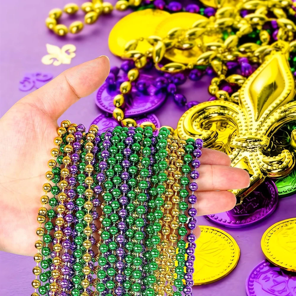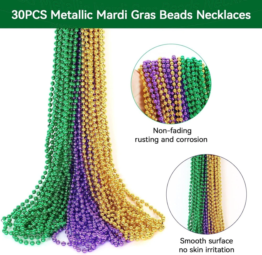 Free eBay listing template designed by dewiso.com 30 Pack Mardi Gras Beads Necklaces Bulk, Mardi Gras Accessories for Party Favors, Gold Green and Purple Decoration St Patricks Day Necklace Party Supplies Mardi Gras Decor For Party, School Event,Home FREE AND FAST SHIPPING! 30Pcs Mardi Gras Accessories: Each mardi gras decorations set contains 30 mardi gras beads necklaces. There are three colors, purple, gold and green, the number of each color is 10. Mardi Gras beads necklace can meet your decoration needs Perfect Mardi Gras Decorations: The mardi gras necklace beads is great as mardi gras party supplies, st patricks day necklace, mardi gras party decorations, kids birthday party, school events or other places. Mardi gras necklaces beads make your carnival more festival. With purple gold green color, it can become the highlight of the party or celebration High-Quality Materials: The mardi gras beads are made of high-quality materials. Each mardi gras beads bulk decorations are carefully crafted, and the gloss and texture are also great. You can enjoy the happiness and joy of these mardi gras beads bulk Widely Applicable for Many Occasions: The mardi gras beads necklaces are not only suitable for decoration, carnival decoration, st patricks decoration and birthday party. Also ideal choice as home decorations, school events supplies, classrooms, social gatherings, etc., to create a holiday atmosphere. You can reuse these mardi gras beads for different party Enjoy Our Service: When you buy Mardi Gras Beads Necklace in our store, if you have any further questions,please don't hesitate conta ct us by "Ask a question",we will follow up with you as soon as possible Tips: Not for children under 3 yrs. Recommended for kids above 3 years old; Please using under adult's supervision when the children under 3 years old Product We offer a 30-Day Return Policy on items which you are not completely satisfied with. You have the option for a full-refund or an exchange of the item. No returns are available on items shipped outside of the US . Shipping We offer Free Shipping to the US and ship within 2 business days of payment, usually sooner. We use UPS express shipping. That's why your products are usually delivered within 3 days . Contact We try our very best to make sure every customer is completely satisfied. If there's a problem , message us! We're happy to help. 24/7 live chat available.