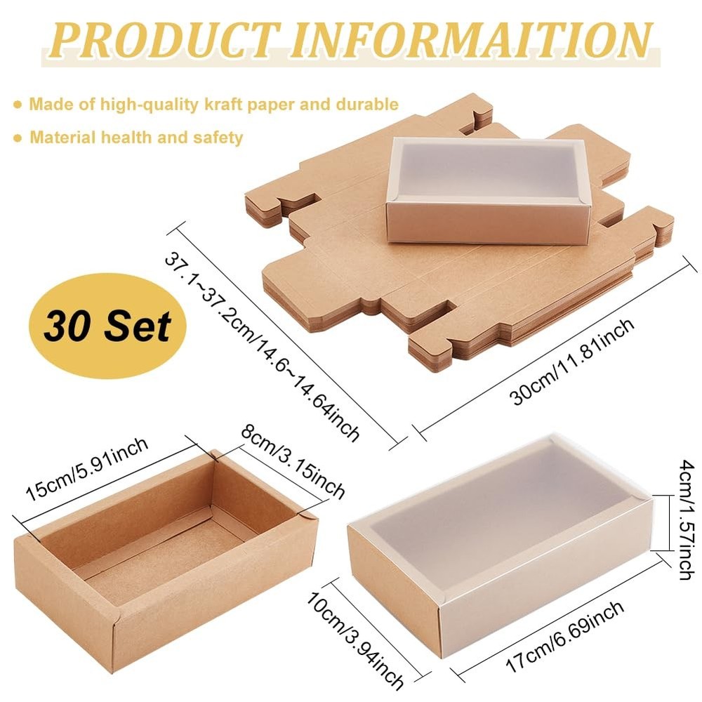 Specification: Material: Paper Size: about Unfold: 30cm wide, 37.1~37.2cm long, fold: 17x10x4cm, inner size: 15x8x4cm, 0.05cm thick, 30pcs. Package:Package includes 30 sets of kraft paper boxes with transparent windows, practical and easy to use, sufficient quantity is enough for you to place some items, very convenient. Size: Our gift boxes are about Unfold: 30cm wide, 37.1~37.2cm long, fold: 17x10x4cm, inner size: 15x8x4cm, 0.05cm thick to meet your needs. Material: The gift packaging box is made of high quality kraft paper, safe and reliable to use, the top is designed with a transparent see-through window, which is convenient to display your exquisite items and make your gifts look more exquisite. Easy to Assemble: The party gift box is flat packed to prevent damage in transit, the cake box is pre-folded packed, you just need to press hard along the folds to deepen them, the treat box will be folded quickly. Widely Used : The bakery box with window can meet your daily life baked goods packaging needs, not only for pastry boxes, but also perfect for weddings, bridal christenings, birthday parties, Christmas.
