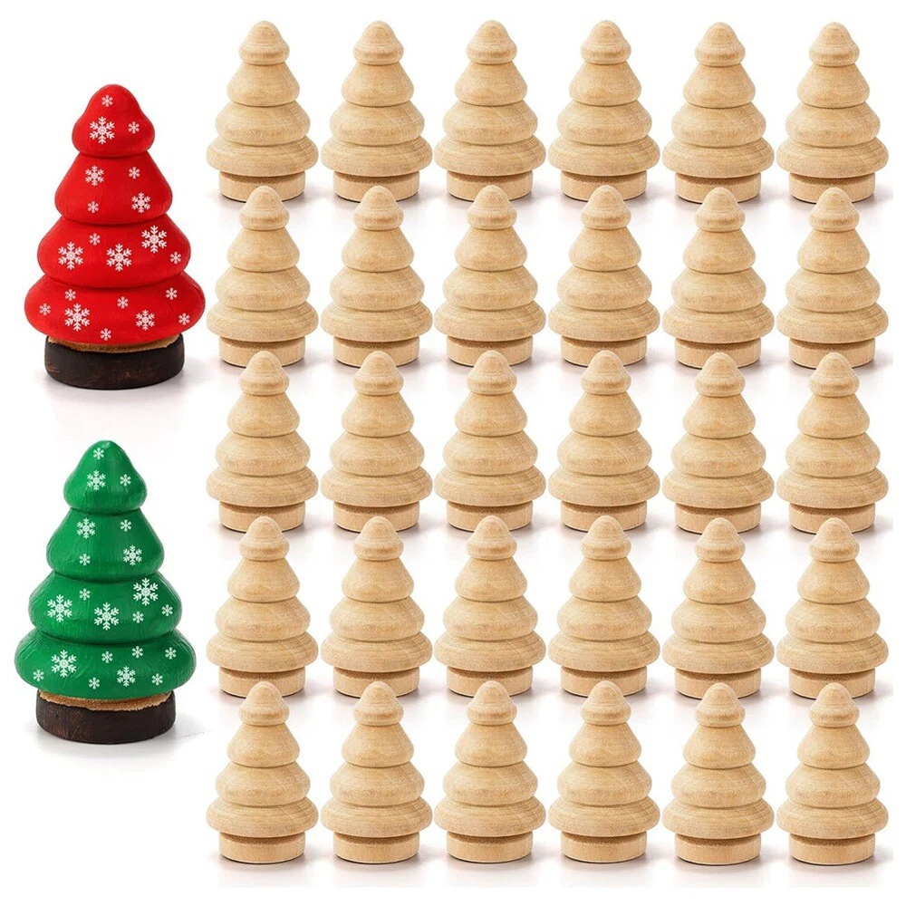 30 Pack Unfinished Wooden Christmas Tree, Natural Wooden Miniature Tree7659 What You Get: Package includes 30 pack unfinished mini wooden christmas tree. SIZE: . 2.2inch in height, 1inch in bottom diameter. They looks cute, perfect for Christmas decoration. Enough quantity to meet your daily usage or Christmas festival decor. High Quality Material: Our unfinish small christmas tree are made of premuim quality natural wood, sturdy and . PLEASE NOTE: Due to the mini trees are made of natural wood, it is unavoidable with unique natural textures or flecks. Perfect Detail: This mini wooden christmas tree were laser cut and fine polishing, no burr, smooth , be nice to DIY with painting and staining. Come to use our wooden Christmas trees to create personalized Xmas gift with your kids, friends and family. Painted Freely: You can use unfinished wooden christmas tree to paint or stain any colors or patterns according to your preference, then match with different styles. Use your imagination to paint it as you like, and you get the fun of DIY. Great Christmas Decoration: These unfinish small wooden christmas tree conform to Christmas theme and winter atmosphere, great for winter christmas theme and christmas tree decoration. It can be the cutiest christmas gifts to your family or friends. Colour:Wood color Material:Wood Size:5.7 x 3.6cm Package Contents: 30 x Wooden Peg Dolls