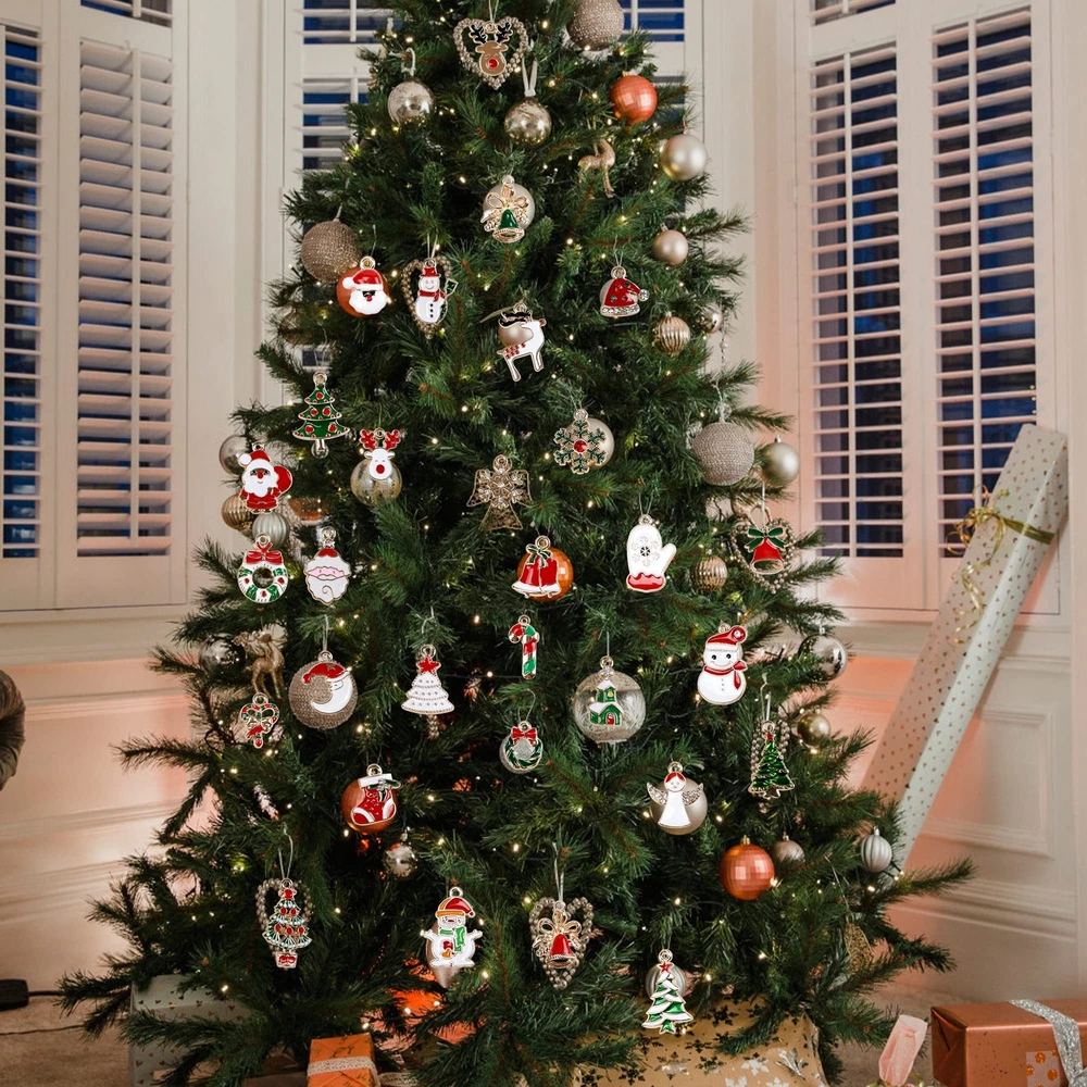 Christmas Ornaments Set: The whole set is composed of 30 pcs figurines with Christmas elements and 30 Pcs silver strings. The cute figurines with Christmas elements include Santa Claus, Christmas tree, snowman, Santa hat, reindeer, stockings, gift boxes, jingle bells, gloves, Christmas balls etc., (no duplicated). Material: The Christmas tree ornaments are made of zinc alloy, non-toxic, 1-2 g each pc, light and durable, good looking with shiny gold rim, which can be used in years. Small Size For Mutil Occasions: These metal Christmas ornaments are less than 1 inch, fitting for small Christmas trees ,mini table-top Christmas tree, wreath or decoration of gift boxes, also as hearwear and ear studs. The Ways Hanging With String: On the top of each figurine, there is a metal loop for string, the diameter is 3 mm. We prepare the 30 pcs strings tied already into a circle, you don't need to tie strings. The way of threading is shown in the picture or video. Rich colors: The Christams hanging ornaments with colors full of in Christmas element, decorate your home, school, office, store, hotels and other occasion, bringing a warm lively festive touch.