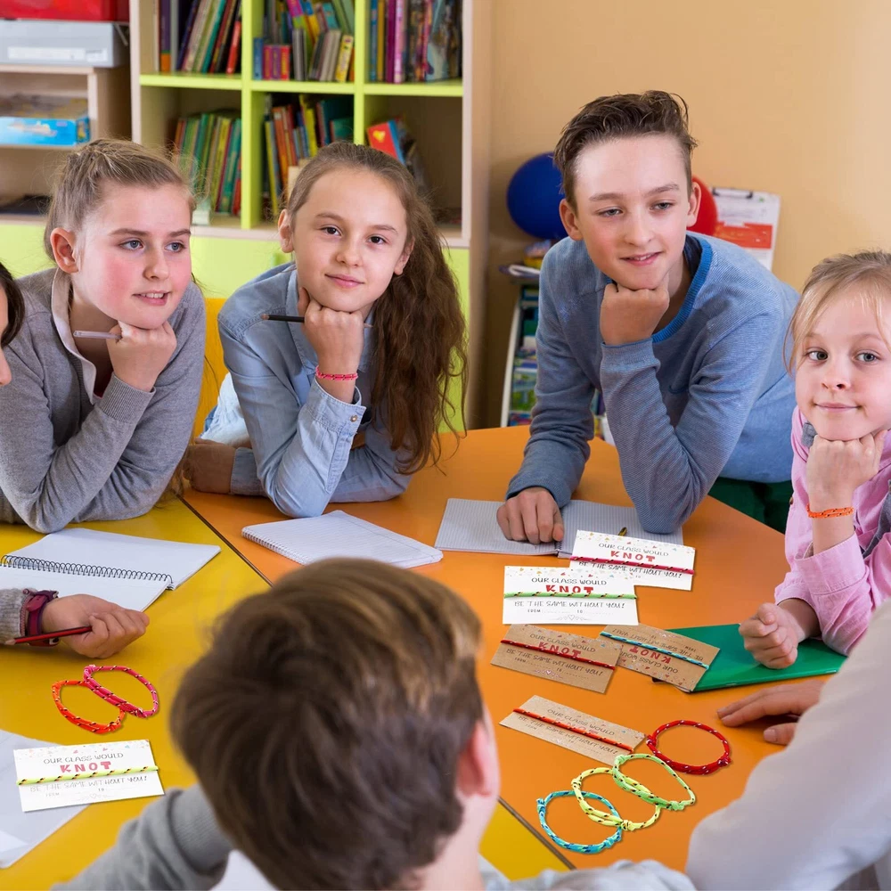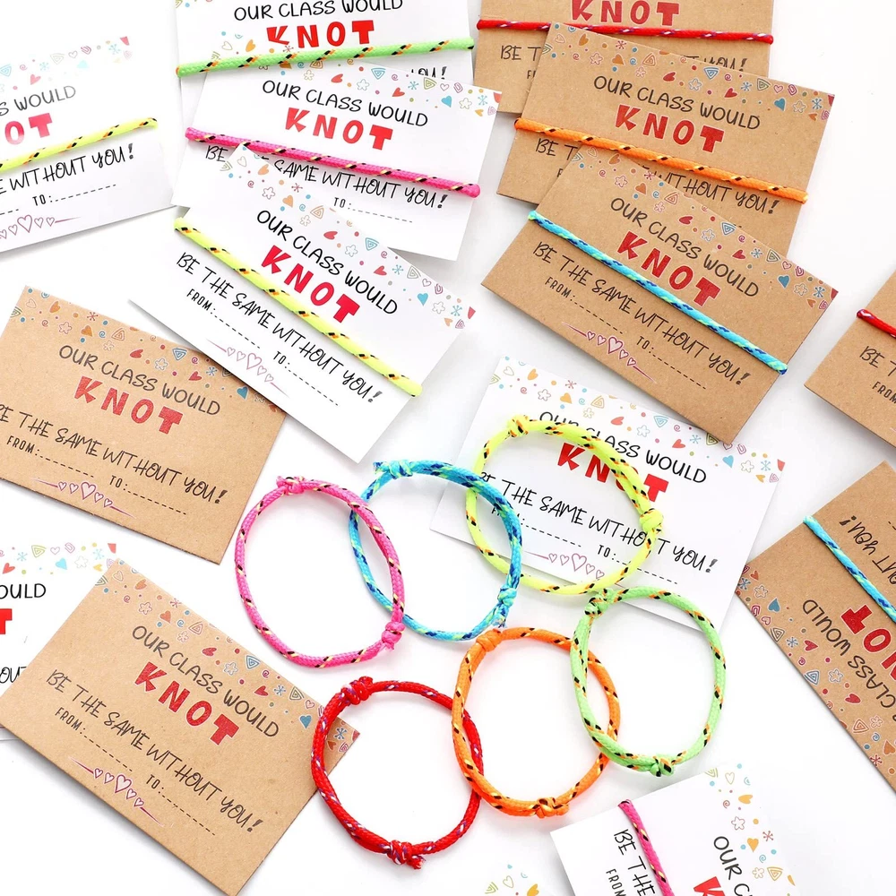 Features: You can use these kid bracelets as rewards to your baby when they achieve great progress. They will feel happy and satisfied when receiving such colorful decorations. When some important days are coming, write something you want on this valentine card for friend to show your sincere and warm thoughtfulness. It is warm hearted of you to bring warmth to your surroundings. Specifications: Material: Friendship bracelets: polyester Valentine's Day cards: cardboard Main color: Friendship bracelets: white, brown Valentine's Day cards: pink, orange, yellow, green, cyan and red Size: as the pictures shown Package includes: 30 x Friendship bracelets 30 x Valentine's Day cards Notes: Manual measurement, please allow slight errors on size. The color may exist a slight difference due to different screen displays. Valentine's Day Card Bracelets: these 30 pieces of friendship bracelets are reliable and soft, made of polyester, enough quantity for you to wear for birthday party, campus activity, school teacher reward, colorful and vibrant, and let your party shine more Various Choices: there are 2 styles of funny anniversary cards of different colors including white and brown; The colors of these bracelets are pink, orange, yellow, green, cyan and red, nice as a gift for someone else; The text on the cards is [OUR CLASS WOULD KNOT BE THE SAME WITHOUT YOU Adjustable for Most People: this kind of Valentine knot neon bracelets can easily be adjusted via knot to fit most sizes, suitable for small, medium and large wrists; These friendship bracelets are charming and beautiful wearing on you Meaningful Gift: the classroom valentines cards and knot bracelet are suitable for girls, boys, students, friends, girlfriend, and boyfriend; And it will be a meaningful gift for Valentine's Day, Mother's Day, Christmas, Thanksgiving, birthday, graduation, anniversary, engagement or wedding Nice Blessing Cards: you can write many appreciation or blessing words on these adult Valentine's Day cards, to show your care and concern; These delicate cards are made of sturdy cardboard, which can be stored for a long time