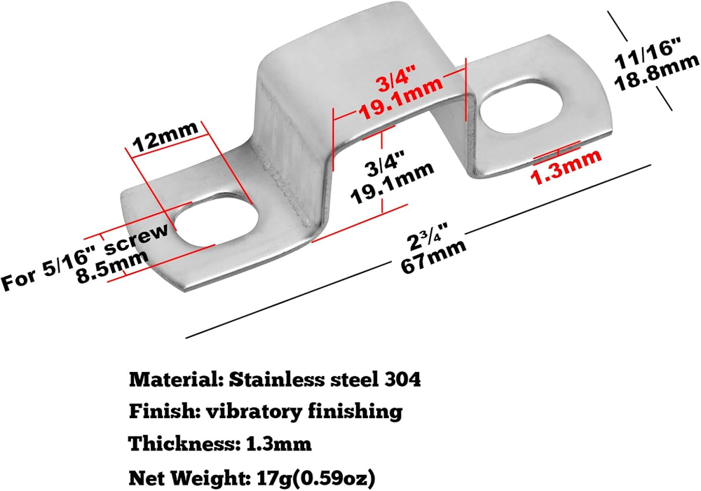 Store New Arrivals Add to Favorite View Feedback GBGS 30 Pcs Square Tube Strap Clamp for 3/4" X 3/4" Pipe,Stainless Steel 304,Inner Size:19.1X19.1Mm Description Item model number GD193-T30 Batteries Required? No Color Silver Brand GBGS Material Stainless Steel Country of Origin China Item Weight 0.6 Ounces Manufacturer GBGS Package Dimensions 5.39 x 3.82 x 2.4 inches Included Components 30 Pcs Square Tube Strap Clamp Size:19.1x19.1mm fit 3/4"x 3/4"Square Pipe. Material: Stainless steel 304,Surface treatment: vibratory finishing. Thickness:1.3mm;Slot Hole Size : 12x8.5mm for 5/16 in Screws. Multiple Applications: square straps are suitable for water pipes, balcony railing, stairs railing, and other installation projects. Package:30 x Square Pipe Buckle Strap Clamp,Screws not include. Product Description Specifications: Material: Stainless steel 304 Finish :vibratory finishing Thickness: 1.3mm Inner size:19.1x19.1mm(3/4 x 3/4 inches) Slot Hole Size : 12x8.5mm for 5/16 in Screws. Weight :17g (net ) 510g (30 pcs) Packing list: Square Tube Strap Clamp × 30 ABOUT US We offer the best prices around on high quality products. Our E-store includes media such as books, movies, music and games while offering electronics, toys, sporting apparel, clothing, tools, general home, garden items and more. SHIPPING We are always working hard to ensure your package arrives as soon as possible. Please understand that some factors like weather, high postal traffic, and the performance of shipping companies are outside of our control. We offer free shipping to the lower 48 states and ship within 2 business days of payment, usually sooner. We do not accept P.O. Boxes. Please provide a physical address. RETURNS We offer a 30-Day Return Policy on items which you are not completely satisfied with. You have the option for a full-refund or an exchange of the item. No returns are available on items shipped outside of the USA. PAYMENT We accept PayPal. CONTACT US This page content is yet to come Please ad us to your favorite seller and visit again later Thank You