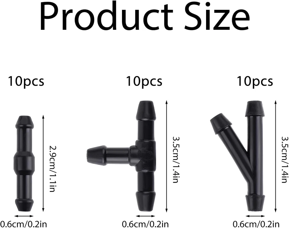 【Functional Repair Kit】This windshield wiper hose connector is designed to link the windshield cleaning water pump to the nozzle, ensuring smooth water spraying for quicker and more responsive windshield cleaning. It enhances driver visibility, promotes driving safety, and effectively prolongs the service life of wiper blades. 【High-Quality Engineering Plastic】Made from durable rubber material, this car windshield washer hose kit offers excellent wear resistance, lightweight properties, chemical resistance, and aging resistance. Its sturdy and durable construction ensures it can withstand extreme temperatures without compromising performance. 【Packing List】You will receive 10 pieces of T-type (3-way) hose connectors, 10 pieces of Y-type (3-way) hose connectors, and 10 pieces of I-type (2-way) hose connectors. With three different shapes of windshield wiper hose connectors, you can efficiently complete your repair tasks. 【Effortless Replacement Procedure】Choose the appropriate car windshield washer pipe connector to ensure a secure attachment to the nozzle. Install the new windshield wiper hose connector in alignment with the original hose routing, maintaining the system's integrity for seamless functionality. 【Extensive Compatibility】Designed to fit most cars, SUVs, trucks, and more, these water washer pipe adapters have been thoroughly inspected and tested for long-term functionality. This car windshield washer hose kit securely connects the car washer fluid hose to the fluid pump or other tubes, serving as an excellent replacement for aging connectors. "-----------------Welcome To Our Shop-----------------" Packing List: 30 × windshield wipers hose connector Specification Size: I TYPE: 2.9*0.6cm/1.1*0.2in T TYPE: 3.5*0.6cm/1.4*0.2in Y TYPE: 3.5*0.6cm/1.4*0.2in Color: Black Material: Plastic ❤ Service Customer satisfaction is very important to us. Don't hesitate to with any problems with our items or services.