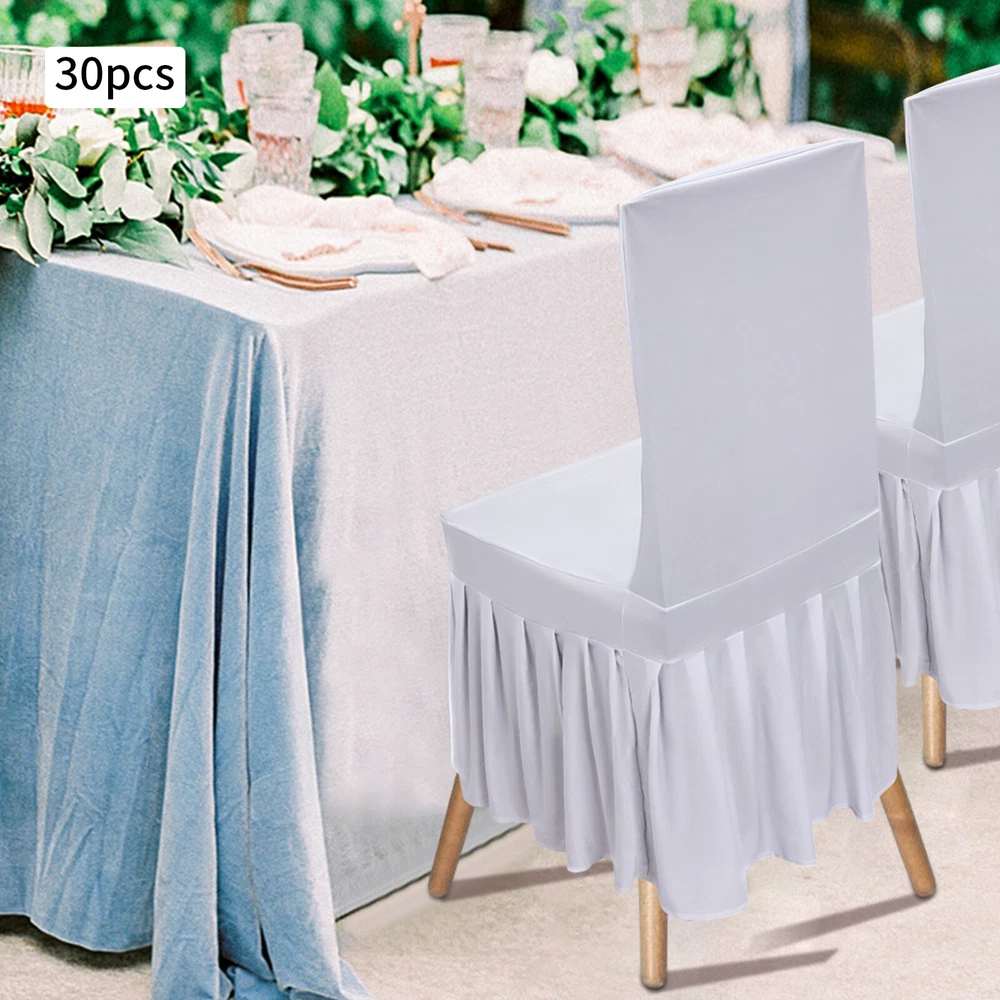 Specification Material: 95% Polyester+5% Spandex Process: Cutting, Sewing Color: White Style: Modern Assembly Required: No Number Of Pieces: 30 Is Machine Washable: Yes Seat Length/Width: 40-55 cm/16-22 inch Seat Back Height: 45-55 cm/18-22 inch Seat Back Width: 37-45 cm/15-18 inch Skirt Length: 41 cm/16 inch Gross Weight: 5.7kg/ 12.57 lbs Package Size: 54*40*40 cm/ 21.26*15.75*15.75inch Package Included 30 * Chair Covers 30 Pieces Chair Slipcovers with Skirt, White Wedding Stretch Chair Cover Description Description Our chair covers are made of high-quality materials, which are not easy to fade and wrinkle and can ensure a long service life. Its minimalist appearance is highly fashionable and can be well adapted to all kinds of banquet scenarios. It can be washed by hand or machine, which saves time and money for professional maintenance. Its beautiful ruffled skirt can not only play a good decorative role but also can cover the chair legs, to give your chair all-around protection. Such an economical and practical product must be your ideal choice! Key Features Good Material: This product is made of 95% polyester and 5% spandex with cutting and sewing, which has a soft and comfortable hand feel, and is resistant to wrinkles and color fading. Minimalist Appearance: The classic white color is suitable for a variety of scenarios, fits well into different decorating styles, and adds a touch of fashion to your party. All-around Protection: This product protects your chair from stains, dirt, pet hair, and pet scratches and bites, ideal for families with children and pets. Improve Comfort: The fabric of this product is comfortable and soft to the touch, which can give your skin baby-like care and let you relax your body after exhaustion. Good Adaptability: This product is made of stretch fabric, which is compatible with most of the chairs on the market, making it extremely practical. Lightweight and Portable : This product is folded and packed, and lightweight (less than 12.57 lbs for 30 pcs), so you can easily take it to different occasions to use. Easy to Maintain: This product is very easy to clean, either by gently rubbing it in cold water or by machine washing with a neutral detergent. Set of 30: This set contains 30 chair covers, which can meet your daily needs, and if you need more you can buy multiple sets. Details Beautiful Skirt: The stylish and graceful ruffled skirt design can easily cover the legs of the chair and give it a new look. Fine Stitching: The product is tightly stitched with needle and thread, with fine workmanship and smooth splicing, which can effectively prevent chipping. Application This product can be used for weddings, banquets, birthday parties, home decorations, celebration ceremonies, company annual meetings, business meetings, event lectures, parties, restaurants, hotels, and so on. It is suitable for hotel chairs, four-legged wooden chairs, and so on. Specification Material: 95% Polyester+5% Spandex Process: Cutting, Sewing Color: White Style: Modern Assembly Required: No Number Of Pieces: 30 Is Machine Washable: Yes Seat Length/Width: 40-55 cm/16-22 inch Seat Back Height: 45-55 cm/18-22 inch Seat Back Width: 37-45 cm/15-18 inch Skirt Length: 41 cm/16 inch Gross Weight: 5.7kg/ 12.57 lbs Package Size: 54*40*40 cm/ 21.26*15.75*15.75inch Package Included 30 * Chair Covers Notes Please make sure the size of this product fits your chair before purchasing. Please note that this product can only be dried at low temperatures and should not be bleached. Please allow the slight color difference caused by the shooting light and the 1-3 cm error due to manual measurement, and make sure you do not mind before ordering. tu1 Payment Delivery details Terms of sales About us Contact us Payment We accept ebay payment 。 Fees such as import duties, taxes are not included in the item price or shipping costs. These charges are the buyer's responsibility. Delivery details Shipping: 2-9 working days to: USA Terms of sales We maintain high standards of excellence and strive for hundred percent customer satisfaction. Feedback is very important to us. We hope that you contact us immediately before you give neutral or negative feedback, so that we can address your concerns. It is impossible to address issues if we do not know about them! About us Your satis faction is our ultimate goal. We work hard to earn your trust and future business. Our certified technicians have tested each item before shipping. The unit comes with 1 year limited warranty on all manufacturing defects. a) If you receive a defective item, you may return it or ask for a discount. Please contact us within 14 days after you receive the package. b) What you returned must be intact and in its original packaging as re? u. Customer is responsible for shipping costs of the returned item. c) We will cover the cost of shipping back t with the shipping rate indicated in the registration page. We will send you a new unit or refund the full payment you paid. Thank you. Contact us Business Hour Business Hour: Monday To Friday: 8:30 AM to 5:00 PM (Beijing China time) Due to time zones, our reply to your questions may not be immediately. But within above working time, we will reply your email within 24 hours. If it's non-workdays, please kindly be patient and wait till Monday. Please contact us with ebay message. Please feel free to contact us if you have any questions. Monday To Friday: 8:30 AM to 5:00 PM (Beijing China time) Due to time zones, our reply to your questions may not be immediately. But within above working time, we will reply your email within 24 hours. If it's non-workdays, please kindly be patient and wait till Monday. Please contact us with ebay message. Please feel free to contact us if you have any questions.