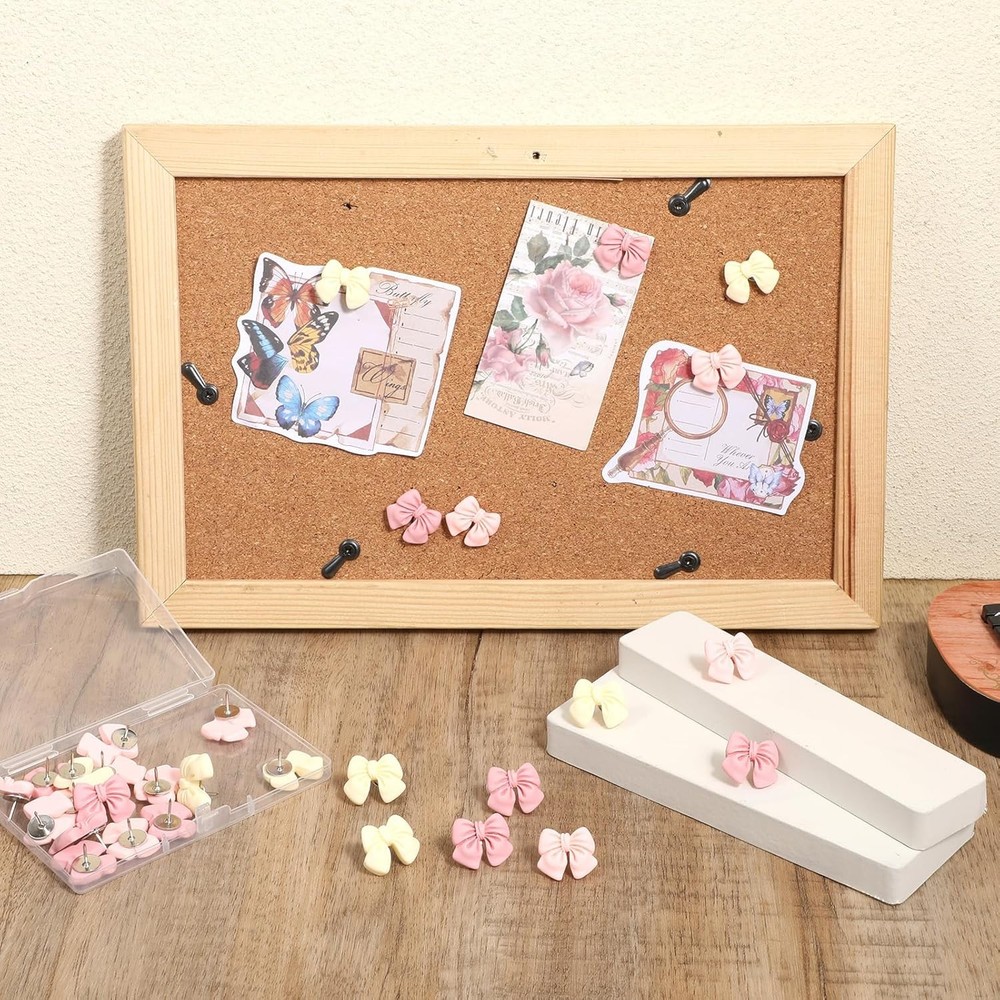 Free eBay listing template designed by dewiso.com 30 Pieces Decorative Bow Push Pins, Bowknot Thumb Tacks for Wall Cork Board Pin Fun Colorful Pushins Cute Pink Push Pins & Tacks for Home School Office Corkboard Bulletin Board Wall Decorations FREE AND FAST SHIPPING! About this item Package Contents: This set includes 30 bow-shaped push pins, packed neatly in a clear case. It's the perfect quantity for all your everyday needs at the office, home, or school Durable and Reliable: Made from premium resin and strong metal, these wall tacks are built to last. They won’t easily bend or break, ensuring long-term, reliable use for any project Perfect Size: Each bulletin board pin measures 2cm (0.9 inches), making them the ideal size for pinning up photos, notes, posters, or maps without damaging the surface Attractive Design: Featuring a charming bow shape in soft pink hues, these cute thumbtacks are not only functional but also add a cute and colorful touch to any space. The vibrant colors won’t fade over time Versatile Use: These decorative wall pins are perfect for a variety of uses, including marking on corkboards, bulletin boards, maps, or displaying photos, they make a thoughtful gift for teachers, colleagues, and friends Product We offer a 30-Day Return Policy on items which you are not completely satisfied with. You have the option for a full-refund or an exchange of the item. No returns are available on items shipped outside of the US . Shipping We offer Free Shipping to the US and ship within 2 business days of payment, usually sooner. We use UPS express shipping. That's why your products are usually delivered within 3 days . Contact We try our very best to make sure every customer is completely satisfied. If there's a problem , message us! We're happy to help. 24/7 live chat available.