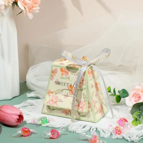 30 Days Return Policy Fast Delivery Trusted seller 30 Pieces Mini Favor Boxes, Floral Trapezoid Candy Gift Box Small Treat Boxes with Pearl Bow Ribbons, Party Favors for Guests Wedding Engagement Bridal Shower Birthday Valentines Gtaduation Product Description 30 Trapezoidal Candy Boxes: You will get 30 pack of wedding candy boxes. Each box measures 4 x 2.5 x 3.5 inches and weighs 0.5 ounces. It can hold 5-6 Ferrero or approximately 15 small purple candies or 5 small candies with a pack of cigarettes. Material: Our candy boxes party favors are made of special white cardboard with its appearance sturdy. Equipped with threaded ribbon, these wedding favors are classic and elegant. The golden twisted rope handle is convenient for guests to carry. The exquisite packaging box would make your wedding more unforgettable. Easy to Fold: The party favor boxes will be delivered to you in a flat manner. After receiving the bags, you only need to follow the instruction we provided to fold them and then you will get a beautiful gift box. The box is a whole piece in package, so don't worry about not being able to assemble it. Exquisite Design: Different styles of gift boxes bulk are all made with hot stamping technology and printed with different flowers, giving them a retro and elegant appearance. Both the ribbon and the box have words representing happiness, eternal love and sweet love. This design is more in line with your wedding theme. Applicable occasions: The treat boxes party favors can be used for Valentine's Day, wedding, engagements, proposals, bridal showers, birthday parties and so on. Shipping Returns Payment Shipping Shipping is FREE to all addresses other than APO/PO boxes in the lower 48 states. All our stock ships from US-based warehouses. Shipped via USPS or UPS (depending on location and package weight) Unless stated otherwise, all orders will ship within 24-72 hours of your payment being processed. Check our feedback to see the great reviews of FAST shipping we offer. Returns As our valued customer, we will do our best to make sure the product you receive arrives to you on time and as expected. If you are not satisfied with your purchase, please contact us within 30 days of receiving your order to process a return. Payment We currently accept payment via eBay managed payments only. Once payment is cleared, we will dispatch your shipment within 1-3 business days. Please refer to the "Shipping" tab for more information regarding shipping speed to your destination.