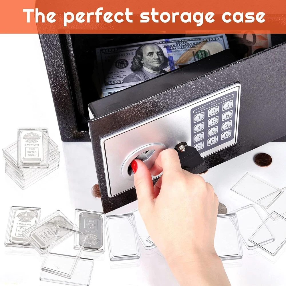 30 Pieces Silver Bar Storage 1 oz Holder Clear Acrylic Product Details Brand: Geiserailie Color: Clear Material: Acrylic Style: Modern Recommended Uses For Product: For storage Package content: you will receive a total of 30 pieces of transparent silver bar storage cases, enough quantity can meet your daily needs of storing or collecting your silver bars Size information: the internal dimension of this silver bar case is about 50 x 30 x 3 mm/ 1.96 x 1.18 x 0.12 inch (L x W x D), and the external dimension measures about 55 x 35 x 6.5 mm/ 2.16 x 1.37 x 0.25 inch (L x W x D); Not all sizes of silver bars can fit into these storage cases; Please measure your silver bar before purchase Practical silver bar organizer: you can well organize and store your favorite silver bars; With these clear acrylic silver bar holders, not only can you easily store the silver bar, but also can quickly find the silver bar you are inested in Durable material: the silver bar storage case is made of quality acrylic material, durable and strong, not easy to break, can serve you for a long time and bring you a nice collection experience Nice gifts for collectors of silver bars: these durable and practical 1 oz silver bar holders containers can be given as gifts to your family or friends who like to collect silver bars; They are also suitable gifts for birthday, anniversary, Easter, Thanksgiving and other holidays