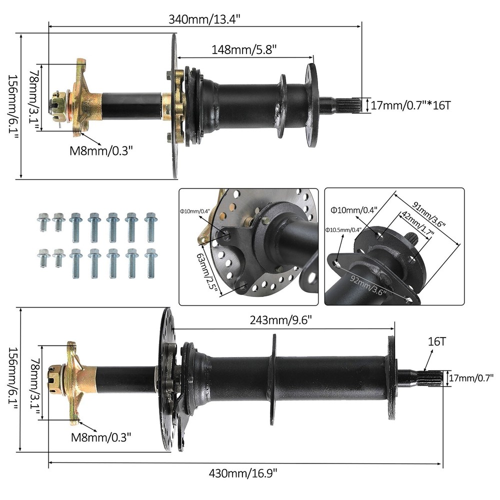 $ 701.2932" Go Kart Rear Live Axle Complete 5" Wheels Steering Spindle Hub ATV Quad DIY