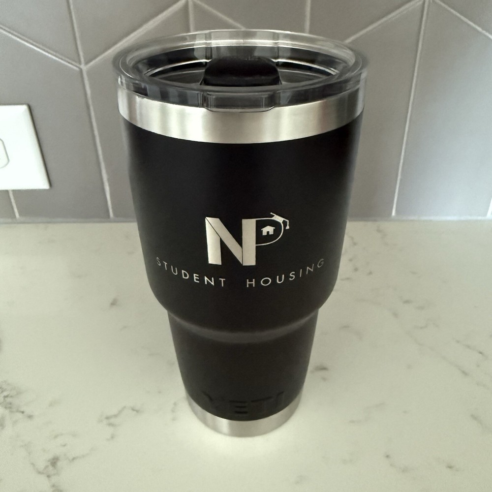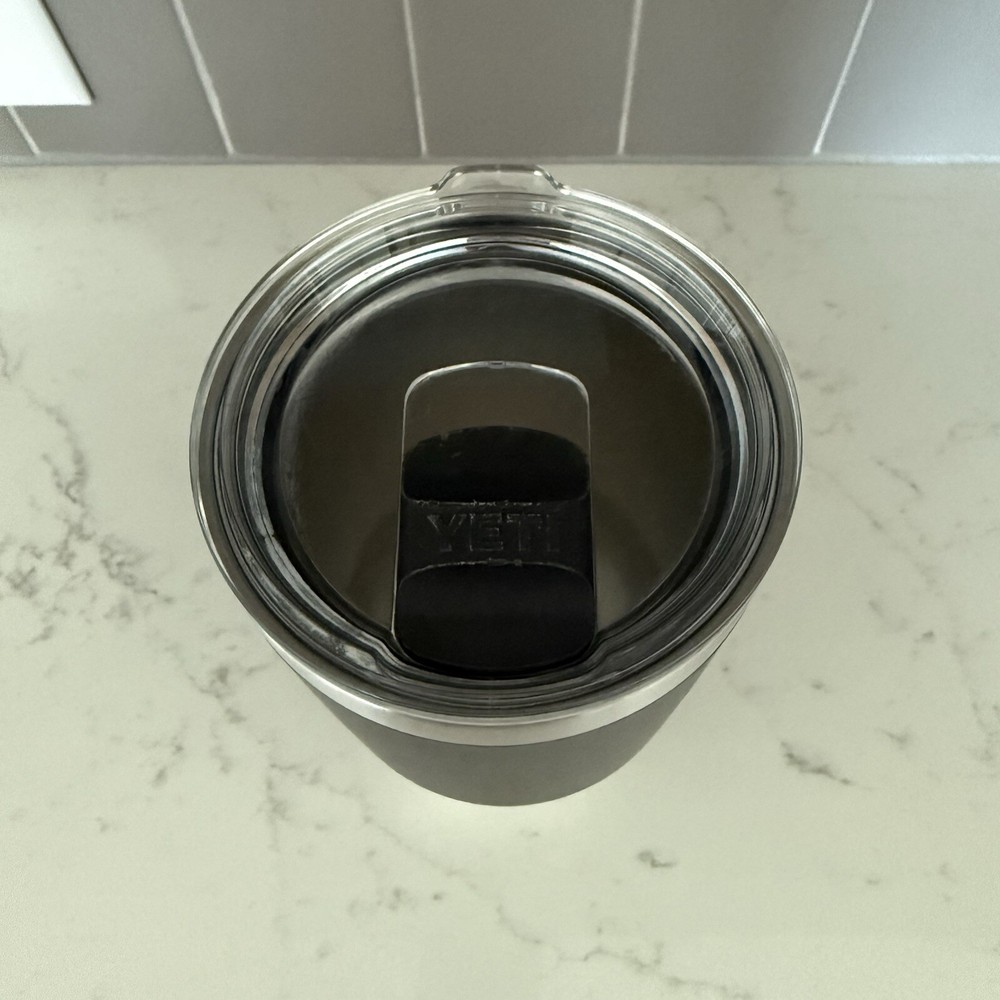 Enjoy your favorite hot or cold beverages on the go with this 30 ounce Yeti Rambler Cup Tumbler. The tumbler is made of high-quality stainless steel that keeps your drinks at the desired temperature for a longer period. Its solid black color and durable construction make it perfect for everyday use, whether you're at work, gym or on the road. The tumbler comes with a lid to keep your drinks secure and prevent spills. Its Yeti Rambler model is known for its excellent insulation properties, making it the perfect choice for your favorite hot or cold drinks. This vacuum flask and mug is a great addition to your kitchen, dining and bar collection.