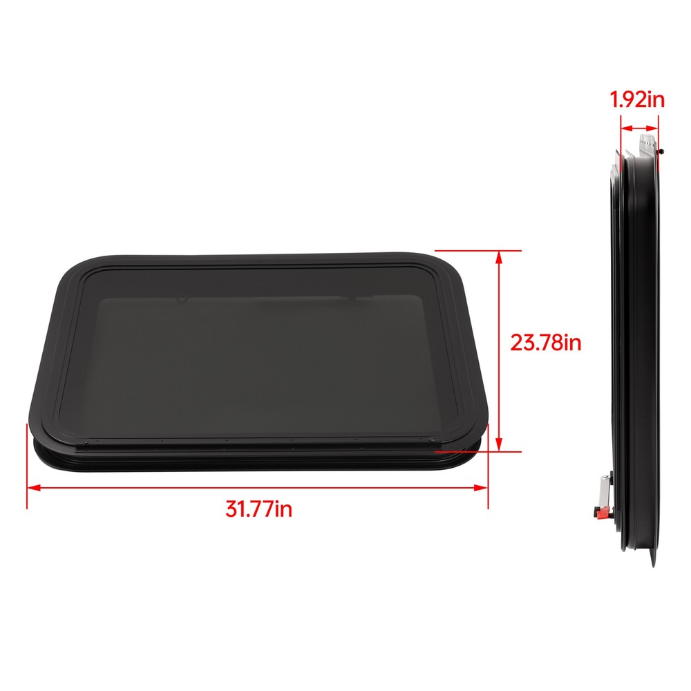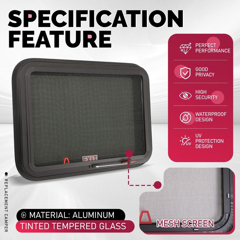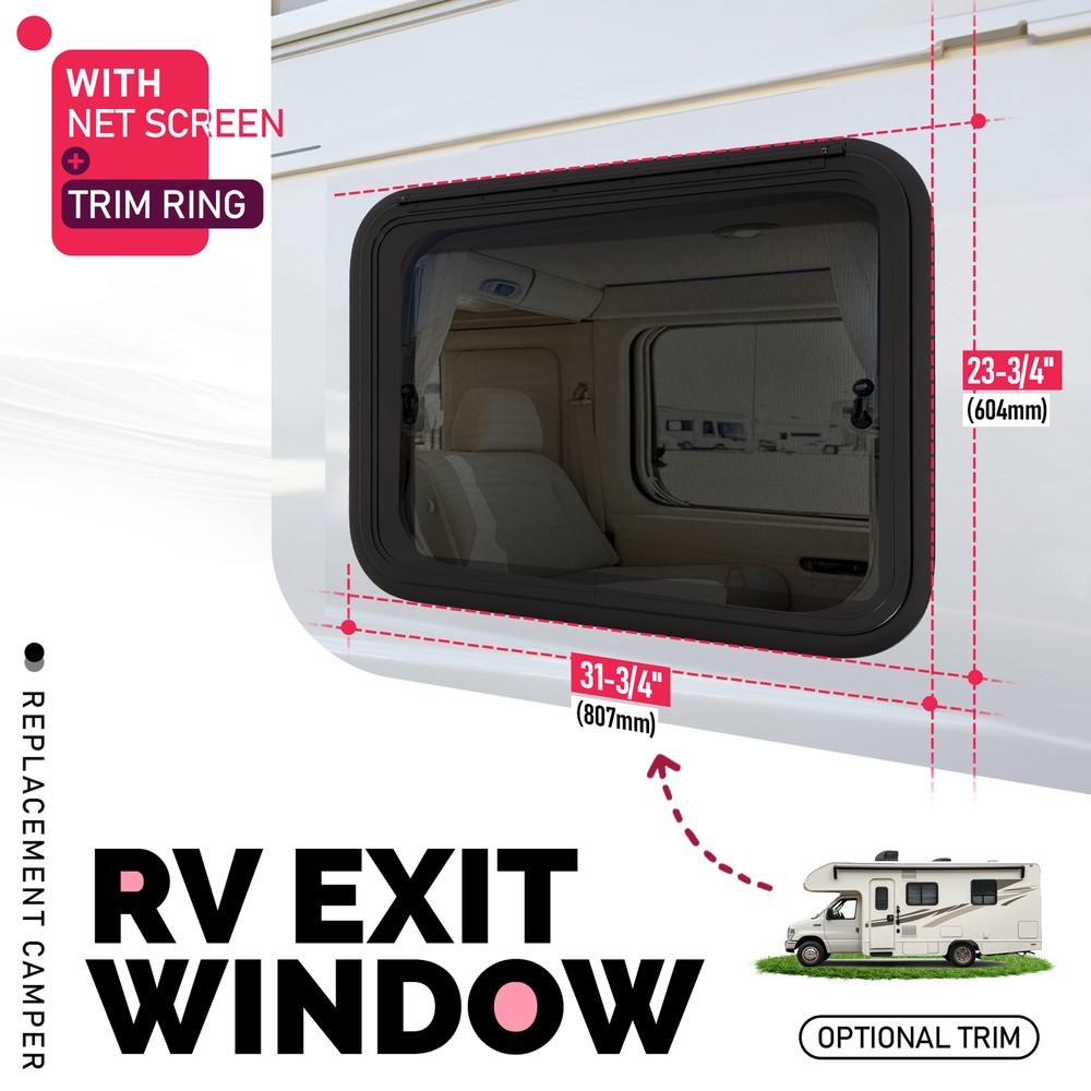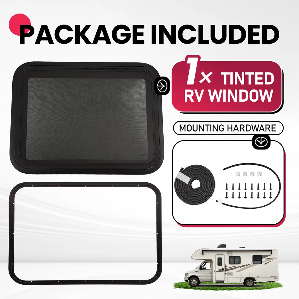 30" x 22" Exit RV Window W/ Removable Screen Trim Ring Dark For Camper Trailer FIT FOR: Universal Such as Camper, RV, Motorhome, Trailer Specification: Condition: 100% Brand New Frame Color: Black Glass Color: Dark MeshScreen: Black Material: Aluminium+Tempered Glass+Plastic(PP) Surface Finish:Powder Coated Features: Anti-mosquito and Breathable:This RV window is equipped with a screen window, and the holes of the screen window are very fine. This screen prevents mosquitoes from flying in when you want to open the window for ventilation. High Privacy:This window is made of tempered black glass. After installation, the environment inside the RV cannot be clearly seen from the outside, so your privacy can be well protected when you are resting. Sturdy and Durable:The windows are made of high-quality steel, which has high strength and is very strong. Simply used:Window opens simply by one lever, and pushes outwards for easy Exit if needed! Package Includes: 1 X RV Window as shown Shipping: All items will be shipped out in 1 business day, no expedited service available. We ship our items to USA only(Does NOT include Hawaii, Alaska or Puerto Rico, PO Boxes/APO's). Shipping Notes: We use multiple warehouses and will select the nearest warehouse for delivery according to your order address and our inventory, Thank you for your cooperation. Contact us: Any Questions, Just feel free to contact us on eBay. We will reply you in 24 hours. On Apr 3, 2025 at 05:08:47 PDT, seller added the following information: On Apr 22, 2025 at 19:38:12 PDT, seller added the following information: On Apr 22, 2025 at 22:15:28 PDT, seller added the following information:
