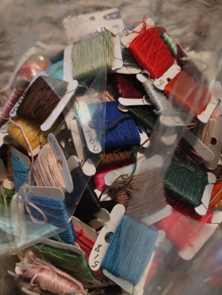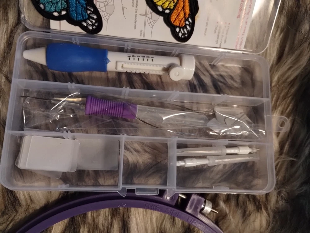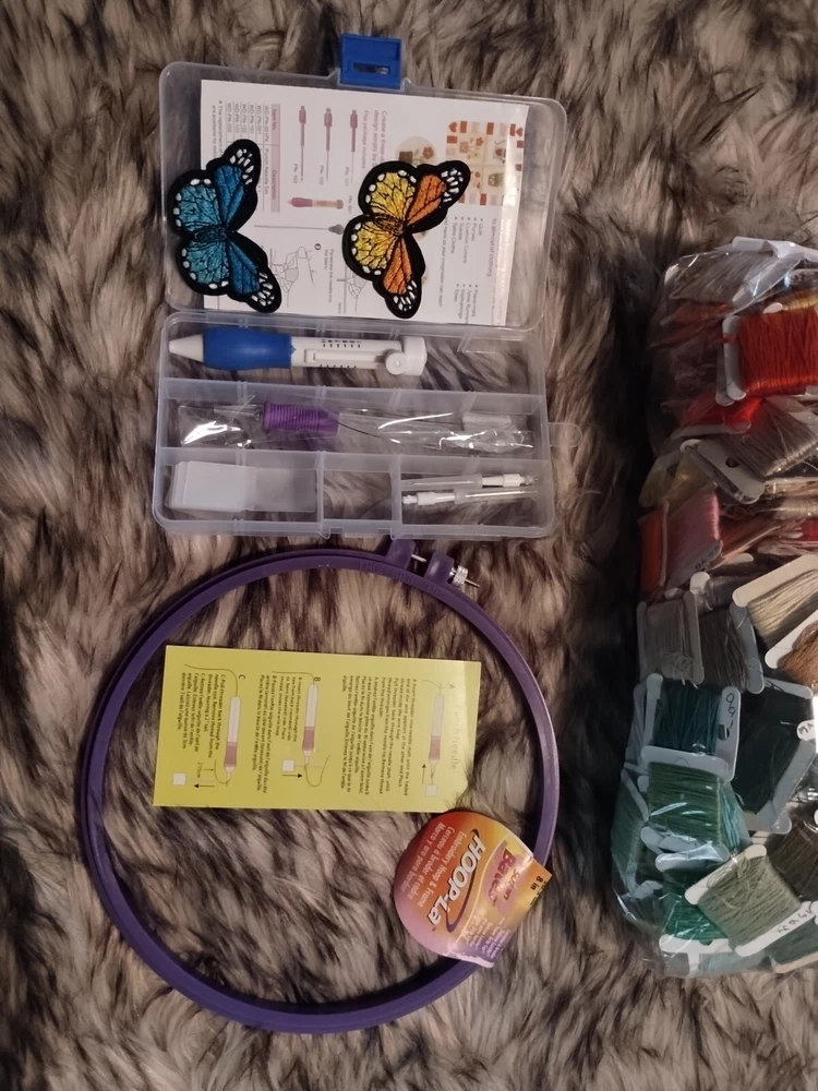 Everything you need to get started excluding fabric. Large lot of approximately 300 cards. This is a quick count grouped in the same color wheel. 50 shades of blues 70 shades of Greens 50 shades of Pinks 55 shades of peaches and reds 75 shades of natural 1/8 in embroidery hoop and frame One punch needle set including one punch needle , one ply needle, three ply needle ,yarn needle and needle threader with patches, instructions and case. Message me any questions and check out my other items as I am cleaning out my craft closet.