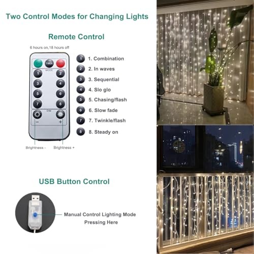 Return Policy Fast Delivery Trusted seller 300 LED Curtain String Lights with Remote & Timer, 8 Modes Lighting, 9.8×9.8 Ft, DIY Lights for Birthday Wedding Chrismas Party Bedroom Door Window Garden Home Decors (Warm White, 1 Pack) Product Description ? Curtain LED String Lights: Our LED lamp lights can light up soft lighting for long hours, but not easy to go hot, no heat radiation and safe to touch. Their cold light source design is energy-saving, low power consumption, high luminous efficacy, so they have long lifespan. They can also bear high temperature and have good water resistance. ? It can light up 8 flashing modes (Combination, In waves, Sequential, Slo glo, Chg/flash, Slow fade, Twinkle/flash, Steady on). Easily operating with 13 key remote control, by pressing the remote's button, you can select your favorite lighting mode , adjust brightness and use timer mode to set up the lights-off time. ? These led string lights are small in size and very lightweight, made of copper wire whiouth welding points, pliable and non-breakable. You can easily bend it into any shape you like. Then hang it on anyw you like, such as wall, door, curtains, tapestry, glass slide door, or wrap it around anything you want, such as trees, flowers, potted plant, garlands, wedding bouquets. ? Each string light is placed separately, 3x3m(9.8x9.8ft) length, 10 strings, 30leds/strings, also comes with hook for each string, remote, use manual. Support USB powered, so you can get rid of conventional power supply's limitations. ? Decorate your home and garden with our led string lights, the charming lights glow in dark , twinkling and beautiful, creating a fancy, romantic and warm atmosp for your lovers, family and friends on Birthday Wedding Chrismas Day, Valentine's Day. Ideal decorations for various party, celebration occasions, concerts, dance ball, fashion shows, wedding background arrangements! Shipping Returns Payment Shipping Shipping is FREE to all addresses other than APO/PO boxes in the lower 48 states. All our stock ships from US-based warehouses. Shipped via USPS or UPS (depending on location and package weight) Unless stated otherwise, all orders will ship within 24-72 hours of your payment being processed. Check our feedback to see the great reviews of FAST shipping we offer. Returns Seller does not accept returns Payment We currently accept payment via eBay managed payments only. Once payment is cleared, we will dispatch your shipment within 1-3 business days. Please refer to the "Shipping" tab for more information regarding shipping speed to your destination.