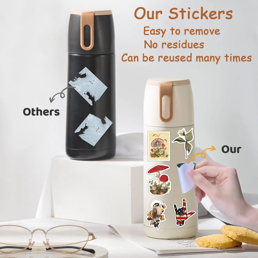 😉【What You Will Get】 Our vintage sticker set includes 300 unique and aesthetic stickers specifically designed to bring a retro and classic vibe to your creative projects. Each sticker measures approximately 2-3.5 inches and is coated with a glossy waterproof layer, ensuring durability and water resistance. We guarantee that customers will receive the exact stickers as described. ✨【Quality Guarantee】We use non-toxic vinyl materials to produce our beautiful vintage stickers. They are safe, waterproof, and durable. The high-precision printing technology ensures clear and vibrant images that won't fade easily. Each sticker is meticulously cut to match its unique shape and size. 👩🔧【Perfect DIY Decoration】You can stick these vintage stickers anywhere you desire. The cute and vibrant stickers can be used as water bottle stickers, skateboard stickers, and laptop stickers. They also serve as delicate and waterproof decorations for water bottles, such as vinyl stickers for hydroflasks, school supplies, phones, guitars, skateboards, computers, luggage, bicycles, cars, and scrapbooks. 🎉【Ideal Gift Choice】Our vinyl stickers for water bottles are carefully designed and selected. You can rest assured that our sticker pack is awesome water bottle stickers and gifts stickers for kids teens girls. Our water bottle stickers are reusable without leaving any residue after removal, which is consistent with the concept of environmental protection. 💓【Satisfied After-sale Services】 The satisfaction of customers is our drive of progress. Please feel free to contact us if you are not satisfied with our cute stickers for water bottles or have any questions about our vinyl stickers for water bottles. We will do our best to provide quality solutions. Product Description Precisely Crafted A high-precision printing technology creates a sticker pattern that is more precise, clear and perfectly cut according to the shape and size 100% Waterproof & Fade Proof Using high quality vinyl to give our modern Aesthetic stickers 100% waterproof protection and the fade proof ink will keep your trendy, chic stickers looking colorful for a lifetime. Easy To Peel And Stick These premium vinyl stickers feature a thin paper backing that can be quickly and easily removed when you're ready to apply these cute decals. Perfect For Decorating Water Bottles Cool, colorful waterproof stickers are an excellent way of adding artsy inspirational decorations to your water bottle without worrying damage from spills or leaks. Here, There & Everywhere Each sticker features a strong adhesive layer that allows them to be stuck on almost anything, including laptops, skateboards, phone, mirror, guitar, books, refrigerator and furniture. Premium Quality Decals This set of carefree, motivational stickers lets you personally embellish various crafting projects such as scrapbooks, journal, planner, notebook, diary, greeting cards, photo albums and much more by using your creativity. Why Should You Choose Vintage Stickers From BarelTree Store? 1. Vintage stickers pack,water bottle sticker pack has 300 unique stickers, all of which are beautifully designed, high quality, waterproof and sunscreen, and reusable, peel off leaving no glue. 2. The applicable range of stickers is very wide. It can be used to decorate laptops, scrapbooking, computers, water bottles, mirrors, notebooks, diaries, suitcases, skateboards, snowboards, bicycles, cars and anything you want to decorate. 3. Vintage stickers for ideal gifts for kids, girls, teens and adults. In festivals, birthday gifts, Valentine's Day gifts, Halloween gifts, Children's Day gifts, etc... THANK YOU For Coming To Our Store...We Hope To Bring You Satisfaction...!