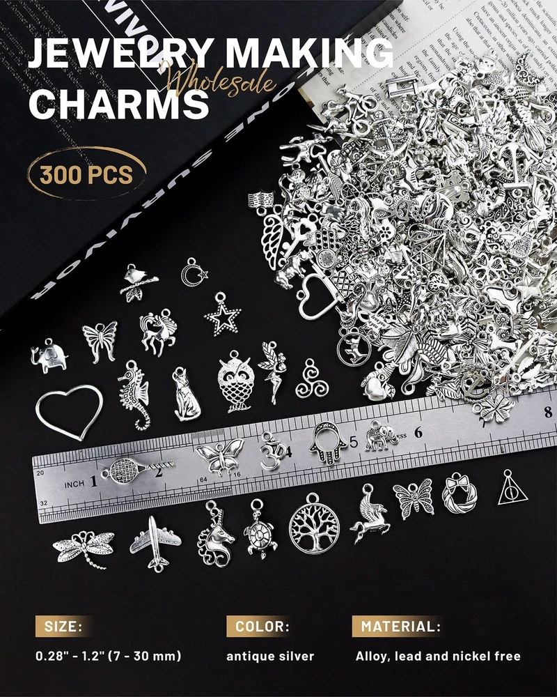 300 PCS Wholesale Bulk Lots Jewelry Making Charms Mixed Smooth Tibetan Silver Material: Alloy, lead and nickel free. 100% brand new and high quality. Color: antique silver. Size: 0.28" - 1.2" (7 - 30 mm). Quantity: 300 pcs jewelry making charms. Mixed flowers, animals, music, nautical, star, moon, tree, fruit, key, wing, sport alloy charms and so on, appropriate for your different needs for DIY crafts. Alloy charms pendants adopt electroplating process, beautiful and safe. Used to create dramatic pendants, earrings, bracelet, necklace, anklet, home decoration and other event decoration, is a very useful accessory. A good gift for birthday party favors, mini treasure toy gifts, halloween and christmas party. Great DIY gift for your friends,lovers or yourself to creat unique eye-catching DIY lucky charms during holiday season. Tibetan silver metal charm, it's fashion, creative, full of special means, is a very useful accessory,Exquisite and classical design charms.It can be used in all kinds of decoration. Perfect for handcraft works, zipper pulls, earring, necklace, bracelet, keychain, sweater chain, anklet, cellphone decoration accessories, etc. Best choice for jewelry DIY. Charms for Jewelry Making 300 Pieces Wholesale Bulk Lots, Mixed Smooth Tibetan Silver Charms Pendants for DIY Necklace Bracelet Jewelry Making Crafting Color: Antique silver. Size: 0.28" - 1.2" (7 - 30 mm). Main Material: Alloy, Metal. Package Include: 300pcs Tibetan silver metal charms. 1 pcs chamois cloth of .(Suitable for cleaning and polishing jewelry.) A good gift for yourself or friends, or birthday gift, anniversary present. Suit for key chain, bag pendant, sweater chain pendants, ornaments, escort cards, scrapbooking, and other crafts etc. These charm can be used to create earrings, necklaces, charm bracelets, and all kinds of jewelry making and craft projects. Perfect for scrapbooking project, necklace pendant drop, jewelry making accessories. Jewelry making accessory mixed wholesale metal charms assorted themes great array of subjects and styles for all kinds of interests Great for parties or groups. Shipping We offer FREE shipping on all orders! We ship within Three business days of payment, usually sooner. We use a selection of shipping services such as UPS, FedEx, USPS etc. We only ship to the lower 48 states, no APO/FPO addresses or PO Boxes allowed. Local pickups and combined shipping options are not provided at this time. Return You can return a product for up to 30 days from the date you purchased it. Any product you return must be in the same condition you received it and in the original packaging. Please keep the receipt. Payment We accept payment by any of the following methods: PayPal Please pay as soon as possible after winning an auction, as that will allow us to post your item to you sooner! Feedback Customer satisfaction is very important to us. If you have any problem with your order, please contact us and we will do our best to make you satisfied. Contact Us If you have any queries, please contact us via ebay. We usually respond within 24 hours on weekdays. Please visit our eBay store to check out other items for sale! Thank you for shopping at our store.