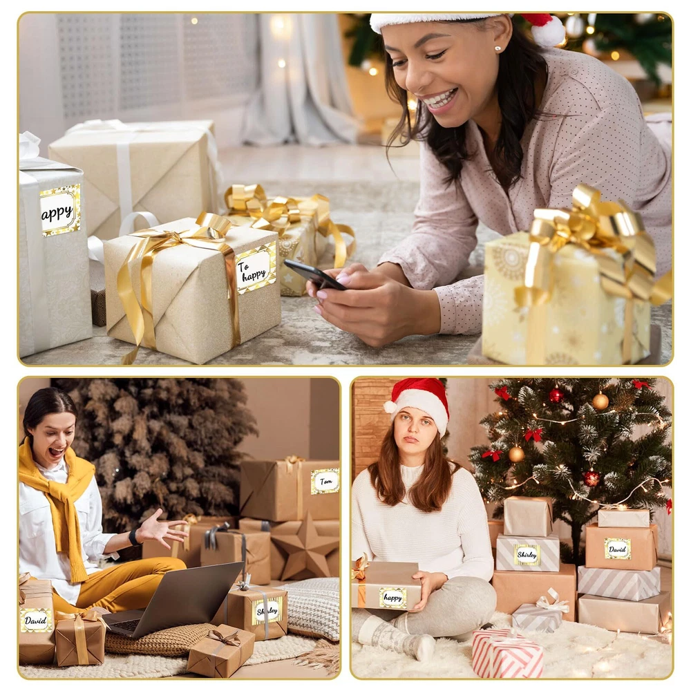 Specifications: Material:vinyl Size:7.62 x 5.08 cm/3 x 2 inches Color: Gold Quantity:300 Labels/1 Roll Features: 1. 300 Pcs 3 different shape gift lable tags to meet your gift decoration needs, enough for custom personalized stickers. 2.The gold name tags are made of durable vinyl material, easy to peel and stick, suitable for most smooth and clean surfaces. 3.The blank label stickers can not only be used for customized personalized stickers, used on gift packaging. but also name tags, classification labels, inventory labels. Note:There may be a manual measurement error of 1-2cm. Due to different display screens, there may be a little color difference. Package includes: You will receive 1 roll of 300 Christmas gift tags stickers, 3 shapes, 100 sheets each, size 7.62 x 5.08 cm/3 x 2 inches, various styles for you to choose, enough for custom personalized stickers. Personalized Design: These name lables are designed with hot stamping process and exquisite frame, golden pattern design, and the blank space for you to write or draw some sentences and patterns, which makes them look very elegant and generous. Self-adhesive Labels: These self-adhesive lable stickers are made of durable vinyl material, easy to peel and stick, good adhesion, not easy to fall or fade, can be used for a long time. Easy to use: These Xmas label stickers are easy to apply and peel off, suitable for most smooth and clean surfaces, such as books, cartons, acrylic, clothes and more. Exquisite gift stickers:These gift tags are beautiful and elegant in appearance, suitable for birthday parties, weddings, Halloween, Thanksgiving, Christmas, etc., to express your sincere wishes to your friends.