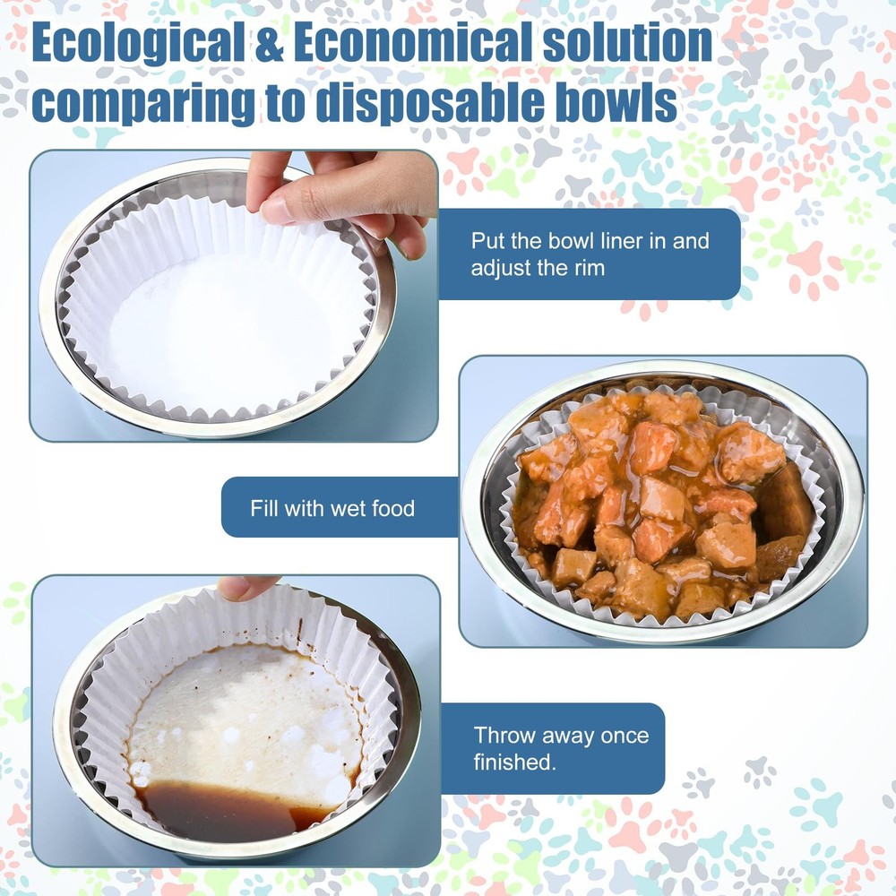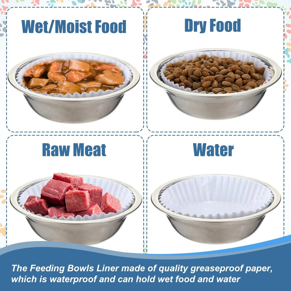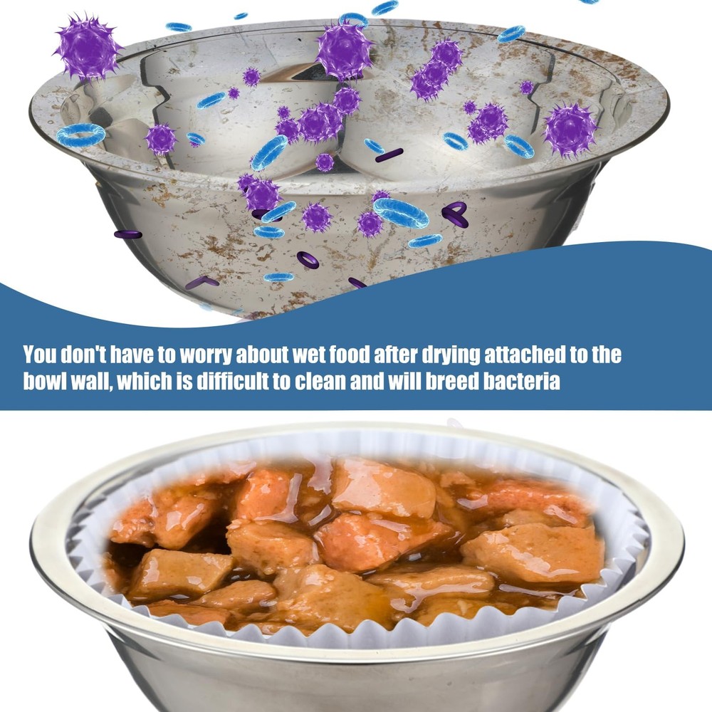 Features: Not leave odor with wet food bowl liner: These pet bowls liners are ideal companions for wet food feeding. They keep your pet's feeding dishes clean and by resisting seepage or soaking, and will not leave odor in the pet bowl. With the wet food bowl liner, feeding time is transformed into a straightforward and uncomplicated task. Simply dispose of them after a meal, ensuring a clean feeding dish ready for the next meal. Ideal gift choices: This cat bowl liner is designed to cater to your pet's needs. Whether you have a small dog and cat, this product simplifies feeding time with its easy to use convenience, you can take them as ideal gifts for people who have pets, showing your love and concern. Specifications: Material: coated paper Color: white Size: approx. 4 x 1.2 inches/ 9 x 3 cm Package includes: 300 x Disposable pet food bowl liners Notes: Manual measurement, please allow slight errors on size. The color may exist a slight difference due to different screen displays. Please note the size before ordering. Rich Quantity: there are 300 white disposable pet food bowl liners, rich quantity can fully meet pets' daily use and replacement needs, also suitable for sharing with other people who have small pets, please note that the package only includes the liner, not the bowl Proper Size: these food bowl liners measure approx. 4 x 1.2 inches/ 9 x 3 cm, you can place them on pet bowls measuring approx. 4.72 inches in diameter, and approx. 1.57 inches in height, please note the size before ordering to avoid buying the wrong one Safe and Reliable: this disposable bowl liner is made of quality coated paper, which is safe, reliable, thick, and sturdy, so you don't have to worry about food leakage or food spill, you can use this bowl liner with confidence Clean and Hygienic for Feeding: this dog feeding bowl liner acts as a barrier between the pet food and the bowl, it can be put into pet bowls, suitable for holding pet dry or wet food, providing a clean feeding environment for your pets, and you don't have to worry about food drying and adhering to the bowl, reducing cleaning problems, improve your pet's health and wellness Practical and Multiple Usage: disposable pet bowl liners are suitable for homes with multiple cats, pet shelters, pet stores, pet feeding stations, parks, and more, making the feeding time effective, maintaining cleanliness without taking up too much time