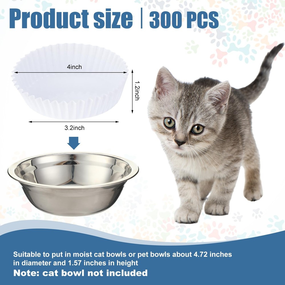 300 Pcs White PET Disposable Cat Food Bowl Liners Bulk Small Pet Feeding Dishes