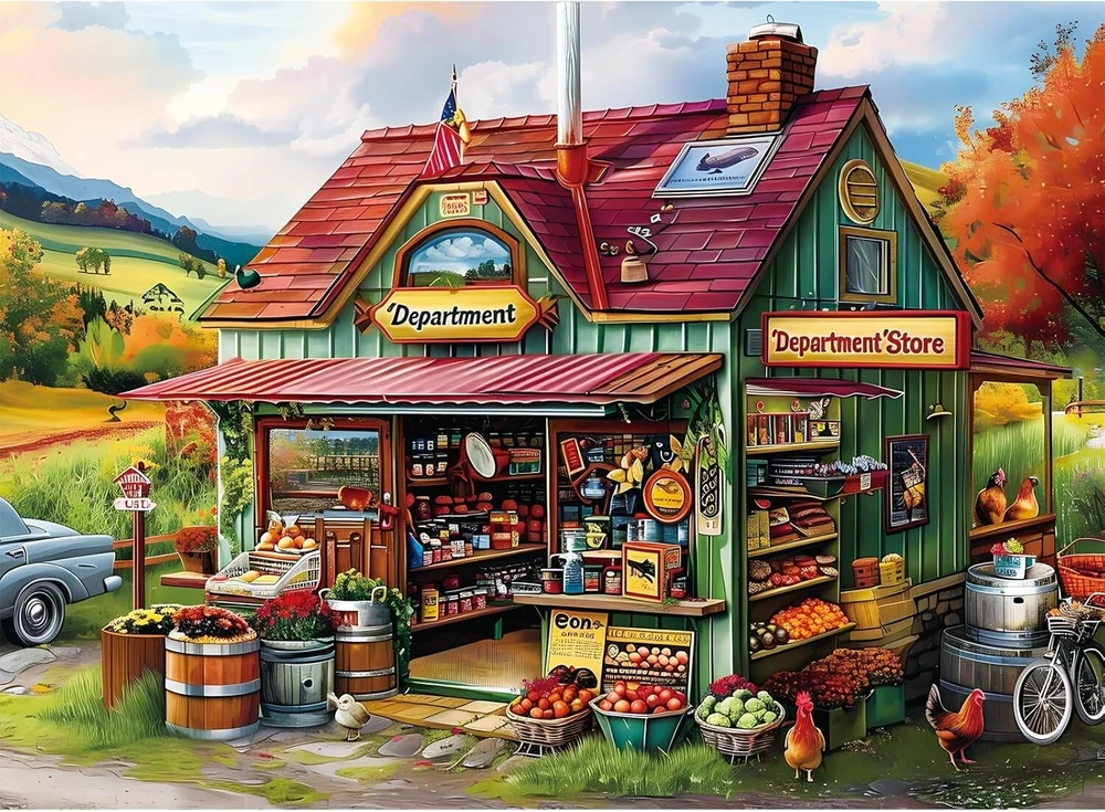 300 Piece Jigsaw Puzzle for Adults Large Piece Shop Puzzle Recycled Cardboard Pa 300 Piece Puzzles Game: The size of the jigsaw puzzles is 20.5 * 15 inches, and this 300 piece puzzle challenge is just right – not too easy, not too difficult, enough to keep you engaged a puzzle adventure for hours on end! This farm puzzle is suitable for children, young people, adults and the elderly! The surface of the 300 piece puzzles adopts advanced film technology to keep the rich and bright colors; The puzzles are exquisitely made with smooth edges, which can be closely assembled together; The back of the puzzle is marked with A-H letters to help the puzzle builder determine the approximate location of the pieces of the puzzle! Our adult puzzles provide opportunities to improve attention, spatial reasoning ability, problem-solving skills and mobility! Experience the mental stimulation and relaxation of assembling puzzles! Whether you are an experienced puzzle enthusiast or a puzzle beginners, this puzzle can give you an extraordinary experience! Bring together your friends and family, prepare juice and coffee, and have a fun and amazing puzzle challenge! We fully understand the loss of missing a puzzle piece when we are about to complete a jigsaw puzzle. Please do not worry. If you have a missing puzzle piece, please email us directly and we will arrange for a replacement! Return Policy: We offer a 30 day return policy from the receiving date. Please contact us for a Free Return Label. Please use our return label so it will go back to our supplier and we can do a refund or replacement afterwards. Feedback: Your satisfaction is very important to us! If you have any problem with your order, please contact us and we will do our very best to make you satisfied. As long as you are happy with your purchase, please leave a positive feedback for us. We will always leave you a positive feedback in return. If you have any problem with your purchase, please do not leave a negative feedback. Please Contact us ... and your issue will be solved quickly and positively We are a small family-owned business trying to make a living, not a huge company that does not care ... We will ALWAYS do our best for you!