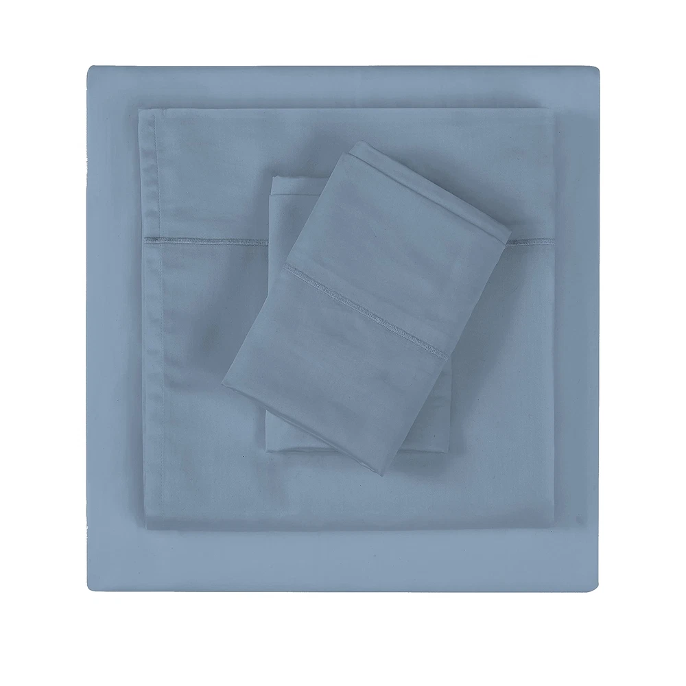 Enhance the idea of comfort with this 300 thread count cotton sateen sheet set. This fabric is made from long-fiber woven threads that create a silky, soft and smooth feel that will wear well over time. The fitted sheet's 15 inch pocket will fit any mattress up to 18 inches and the elastic edges will help to keep it in place. With a variety of colors offered and a sensational yet subtle sheen, this collection is guaranteed impress. 300TC Cotton Sateen Enhance the idea of comfort with this 300 thread count 100% cotton sateen collection offered in a variety of luxurious colors. Includes fitted sheet (72x84 inches) with 15 inch pocket to fit up to a 18 inch deep mattress, flat sheet (108x102 inches), and pillowcases (20x40 inches) 100% Cotton Machine washable