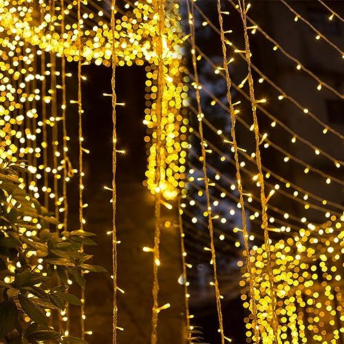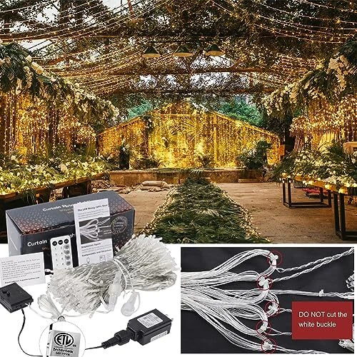 300 Warm White LED Curtain Lights with Remote Control for Christmas Decorations