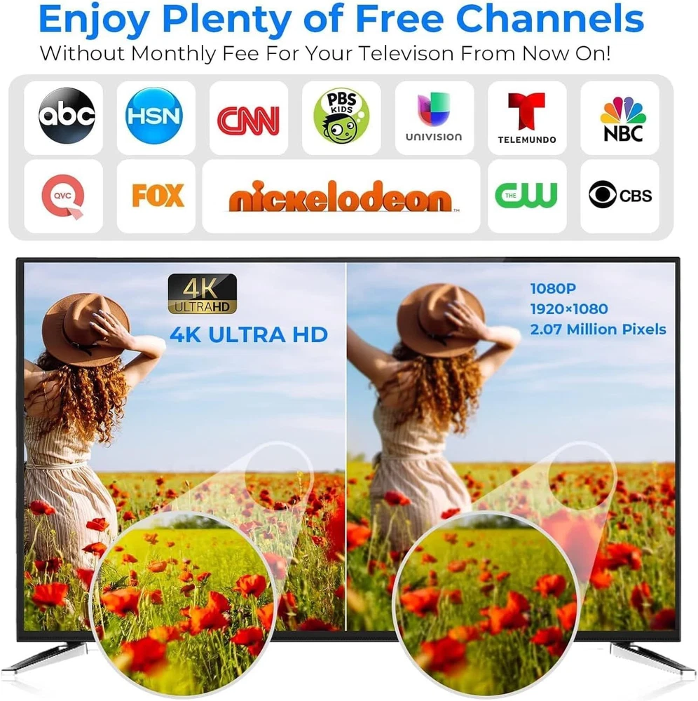 Are you feeling helpless when you are far away from the signal towers? Our tv antenna can accept up to 2200+ miles range signal! Choose us, you will get an 'unbelievable feast for the eyes’. 1:HD Local Channels: With our best digital antenna for smart tv, you will enjoy crystal clear FULL HD channels with HD crystal pictures and clear sounds quality like ABC, CBS, NBC, PBC, CW, Fox, Univision and so much more! 2: 2200+ Miles Long Range Reception: This indoor tv antenna can receive 2200+ miles range for local channels, which can also be placed outdoor for receiving channels. Support Format:720p,1080pi, 1080p/ATSC. 3: 52ft Long Coxial HDTV Cable: Comes With 2024 UPGRADED 52ft coaxial cable, you can place this tv antenna anywhere you want, which suitable for living room, bedroom, basement, rv and so on. Just enjoy all local hd channels with your family or friends 360° Receive Full Free HD Channels: Don't hesitate to choose 2024 Newest advanced TV Antenna from , you will pay 0 COST for TV for life! With this digital tv antenna, enjoy hundreds of crystal clear FULL HD Free channels like ABC, CBS, NBC, PBC, CW, Fox,Univision and SO MUCH MORE! Start to access all news, sports, sitcoms and kids programs at home at ease. Antenna-THE BEST ADVANCED TOOL TO RECEIVE CHANNELS WITHOUT MONTHLY BILL FOR LIFE! 3000+ Miles Long Range Smart TV Antenna: Our company has updated amplifier signal booster of this smart tv antenna for receiving 3000+ miles range for local Channels. Advanced signal booster optimizes the signal transmission protection against interference with other signals, which can make sure you can get more channels even you are far away broadcast towers. Support Format: 8K 4K 1080p /ATSC. 2024 Newset Smart IC Chip: Our tv antenna for smart tv adopts in newest generation powerful amplifier and signal booster, which built-in the BEST Smart IC Chip and Filter Technology.This new technology filters out cellular and FM signals resulting in receiving more clear pictures, lower noise and access to more free broadcast signals with enhanced gain, range and performance. 52ft Long Coxial HDTV Cable & USB Power Adpater: Comes with 52ft coaxial HD cable, which means you can place this indoor/outdoor antenna to get best reception in anywhere,especially for customers whose TVs are quite far away from windows. If there is no USB output for connecting digital antenna to the power supply on the back of your TV, this smart IC USB POWER ADPATER will help you. Easy Installation Indoor/Outdoor TV Antenna: JUST NEED ONE MINUTE! You can install this modern tv antenna indoor/outdoor as you want. Here are three optional installation methods, nails on the wall, sticks on the window or tie to the shelf. Antenna can be placed in home, company, store, square, etc. The most exciting is that it can be an outdoor antenna in RV or tent when you're traveling. Warm Tips: If you have any problems please feel free to contact us and we will reply you within 24hrs! Professional Team and After-sales Guaranteed: If you have any issue with getting few channels,reception, installation or other problems, please feel free to contact us and our professional team will reply you with the best service and make you feel 100% satisfied. Reminder: 1: Re-scan channels after moving tv antenna, 2: Choose the short-range first! PACKAGE INCLUDE: ① Coaxial Cable ② TV Antenna ③ USB Power Supply Cable ④ Coaxial Cable Port ⑤ Signal Booster ⑥ USB Adapter 5V ⑦ Screws*4PCS ⑧ Expansion Screws*4PCS ⑧Expansion*4PCS ⑨Nylon cable ties*4PCS ⑩Double sided adhesive tapes*2PCS ⑪Positioning Card