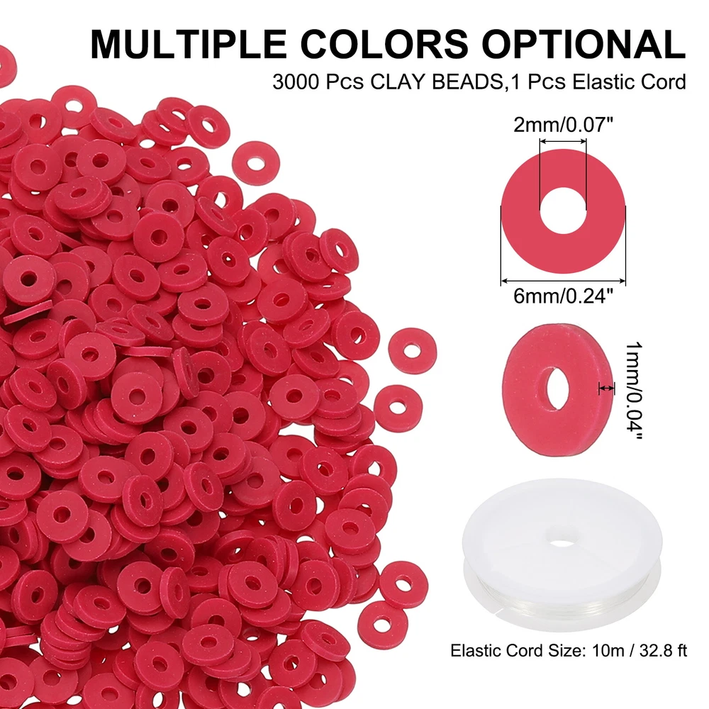 3000 Pcs Rose Red 6mm Flat Clay Beads Friendship Bracelet DIY Kit with Cord