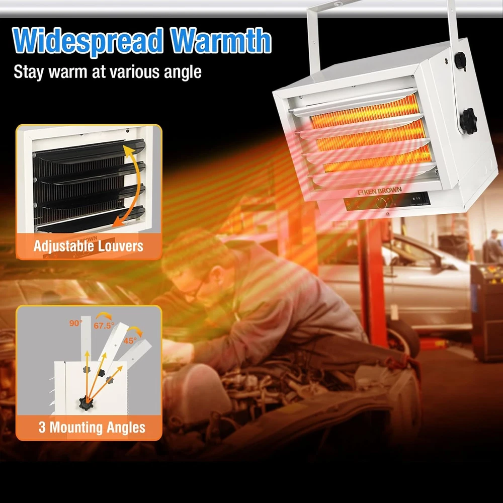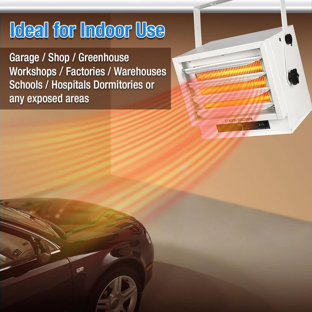 Store New Arrivals Add to Favorite View Feedback Contact 3000/4000/5000 Watt Electric Garage Heater, 240V Hardwired Fan-Forced Ceiling Mount Shop Heater with 3 Heat Levels & Thermostat, Ideal for Garage, Workshop, Greenhouse Description Amperage 20.83 Amps Room Type Living Room, Bedroom Voltage 240 Volts Indoor/Outdoor Usage Indoor Mounting Type Wall Mount or Ceiling Mount Color white Special Feature Thermostat Power Source Electric Heating Method Forced Air Item Weight 24.4 pounds Batteries required No Item Weight 244 Pounds Heat Output 17065 British Thermal Units Size 5000-Watt(hardwired) Burner type Radiant Recommended Uses For Product Garage Heating Coverage 592 square feet Form Factor Ceiling Mount Product Dimensions 12.2"D x 16.15"W x 12.8"H Fuel Type Electric 【CONVENIENT CONTROLS】Electric garage heater heats up more efficiently with up to 5000W working power, heat within 5 second,reaching your desired temperature immediately, letting you feel fast, balmy heat straight away. Dual knob allows you to easily adjust the temperature to adjust the right level for your space and to turn the ceiling mount heater on and off quickly. Note:This electric heater does not come with a power cord. 【TARGETED HEATING】Electric garage heater includes adjustable mounting bracket for optimized positioning. Louvers and a variable mounting angle direct airflow where it is needed most. Our garage heater combines fan-forced design helps to distribute warmth throughout the room. 【BUILT TO LAST】Our electric garage heater is made of heavy gauge steel housing that stands up well to the temperature fluctuations in areas that are poorly insulated. In addition, our electric shop heaters are meticulously fashioned from V0 flame-resistant materials to ensure your safe use. 【SAFETY PROTECTION】Your security remains our utmost concern. This garage heater built-in thermostat allows you to adjust the temperature range 10℃ --35℃(50℉--95℉). The overheat protection sensor detects when the electric garage heater has overheated on the inside and switches it off automatically to help prevent damage to the unit. When you turn off the power, the heater will delay 30 seconds shut down after the temperature comes down. The ETL certification underscores its commitment to your safety and eliminate any potential hazards. 【SPACE-SAVING DESIGN】The electric garage heater is designed for wall mounted or ceiling mounted and 240v hardwired installation, which saves valuable floor space in a packed warehouse, workshop, shop, garage or storage area. 【HARDWIRED INSTALLATION】Our garage heater must be grounded and hardwired connection (240-Volt A.C.) for installation. The heater need to be installed by a certified electrician. For 5000W garage heater, requires 240v circuit with 30 amp breaker and #10 AWG wire. 【NOTE】This garage heater does not come with a power cord. Product Description 1 Meet Your Need 2 Thermal Design 3 Instant Warm-up 4 Widespread Warmth Heats Faster. Runs Safer. Installation for KEN BROWN Electric Garage Heater Specifications ABOUT US We offer the best prices around on high quality products. Our E-store includes media such as books, movies, music and games while offering electronics, toys, sporting apparel, clothing, tools, general home, garden items and more. SHIPPING We are always working hard to ensure your package arrives as soon as possible. Please understand that some factors like weather, high postal traffic, and the performance of shipping companies are outside of our control. We offer free shipping to the lower 48 states and ship within 2 business days of payment, usually sooner. We do not accept P.O. Boxes. Please provide a physical address. For shipping outside of the continental USA, we only use eBay's Global Shipping Program.The item is shipped to KY and then sent to the rest of the world. International customers are responsible for all duties and taxes. Continue to check out in order to calculate costs for shipping the item to your country. Messages regarding eBay's Global Shipping Program MUST be directed at eBay EXCLUSIVELY. RETURNS We offer a 30-Day Return Policy on items which you are not completely satisfied with. You have the option for a full-refund or an exchange of the item. No returns are available on items shipped outside of the USA. PAYMENT We accept PayPal. CONTACT US This page content is yet to come Please ad us to your favorite seller and visit again later Thank You CUSTOMER SATISFACTION We try our very best to make sure every customer is completely satisfied. If there's a problem, message us! We're happy to help. WE ACCEPT Copyright © 2021 AutoDS. | All Rights Reserved