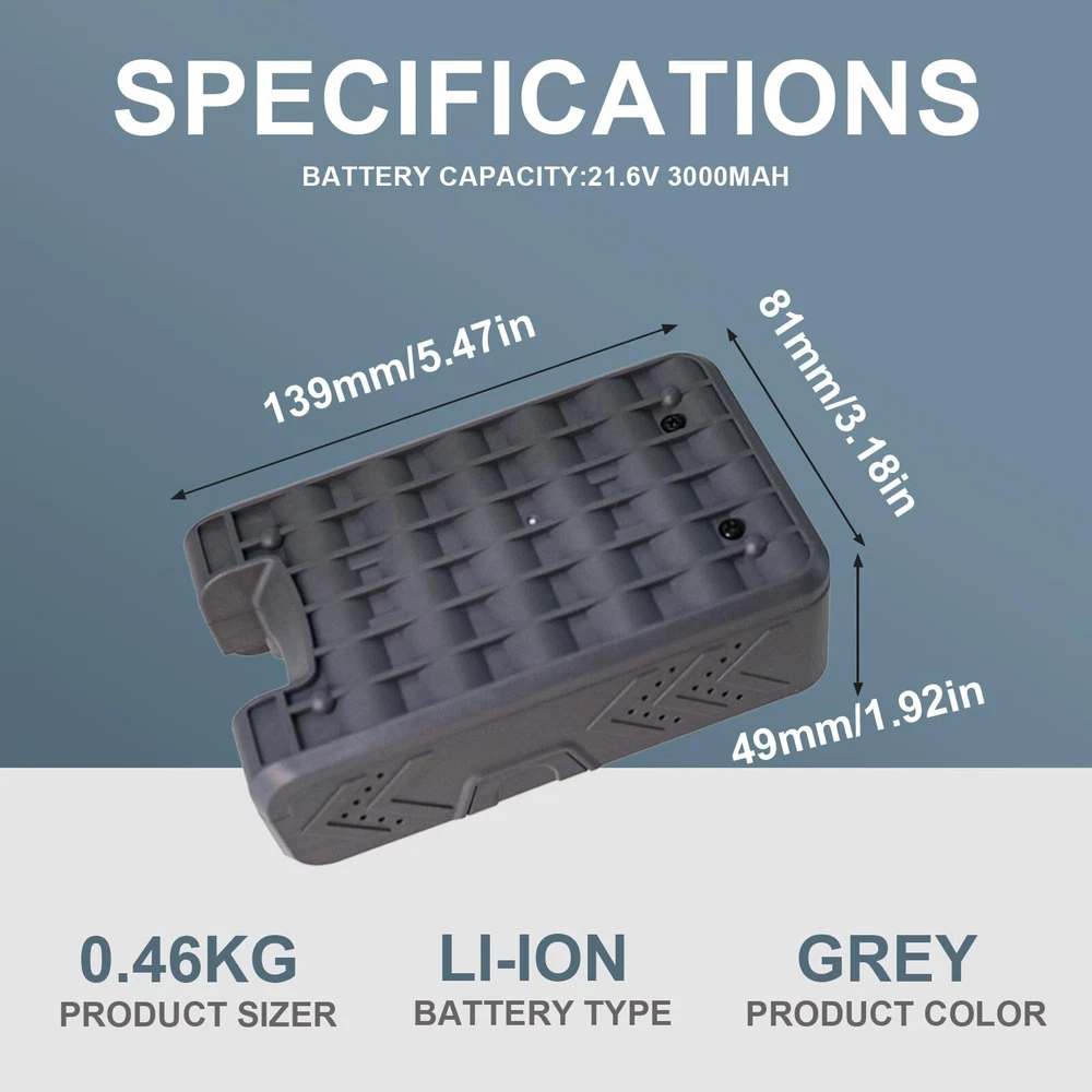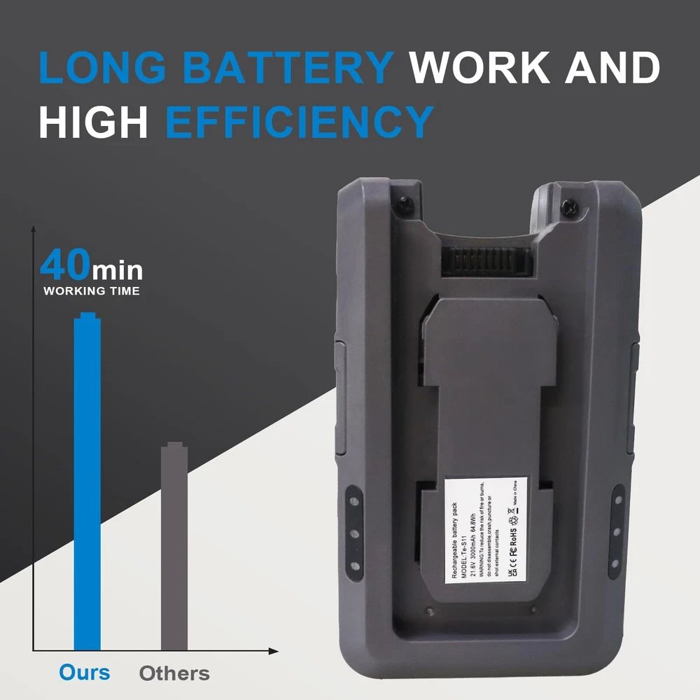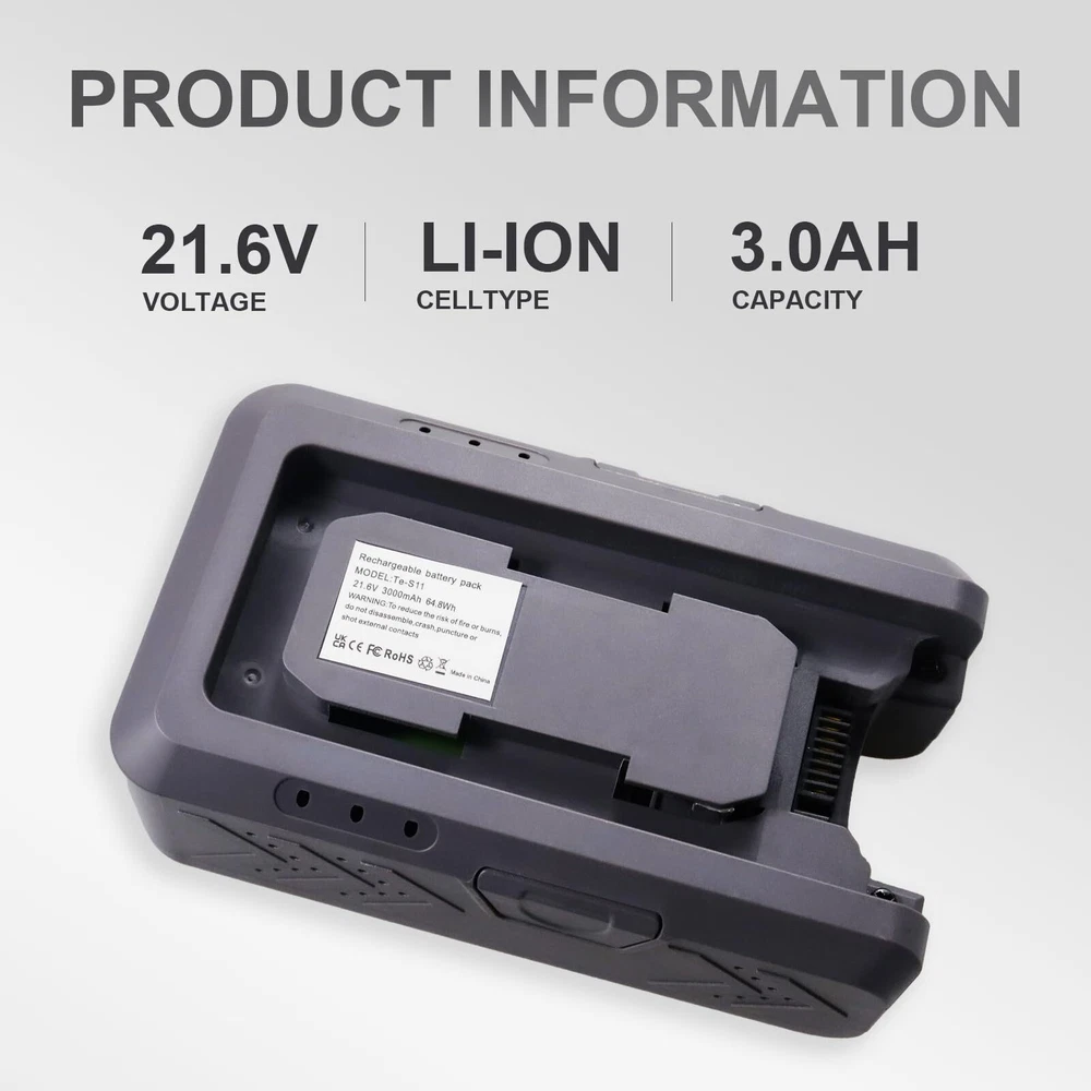 This Moccdor replacement battery Designed specifically for the TINECO S11 series smart vacuum cleaner, for PURE ONE S11 and PURE ONE S11 Tango. 21.6Volt,3000mAh High Capacity. Perfectly compatible with Tineco PURE ONE S11 and PURE ONE S11 Tango and the original charger. With LED indicators show usage and charge level . Lithium-ion Battery Technology provides fade-free power from start to finish. 30 days money back, 24h customer service. Please contact us freely if any questions, we are always here for you.