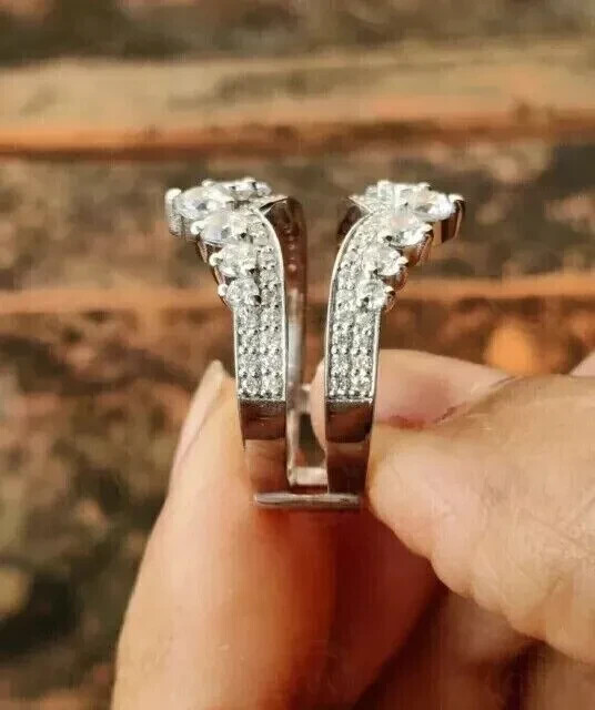 This 3.00ct round cut lab created diamond enhancer wedding wrap ring is a stunning piece of jewelry ideal for various occasions such as anniversaries, birthdays, and weddings. The ring is 14K white gold plated with a secondary diamond stone and features a prong setting style. It is personalized, handmade, and crafted with sterling silver materials, ensuring a high-quality and unique accessory for any woman. The ring also includes engraving details and has a total carat weight of 3.00ct with a clarity grade of VVS1, making it a luxurious and beautiful addition to any jewelry collection.