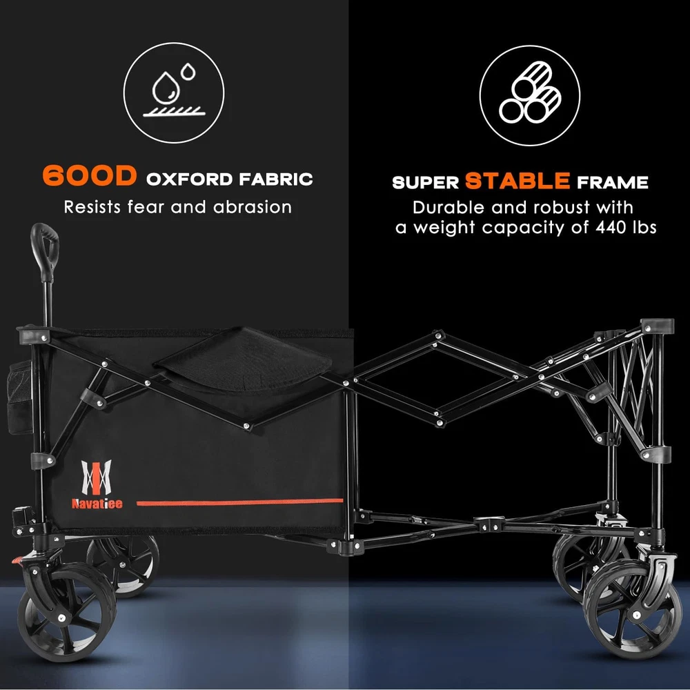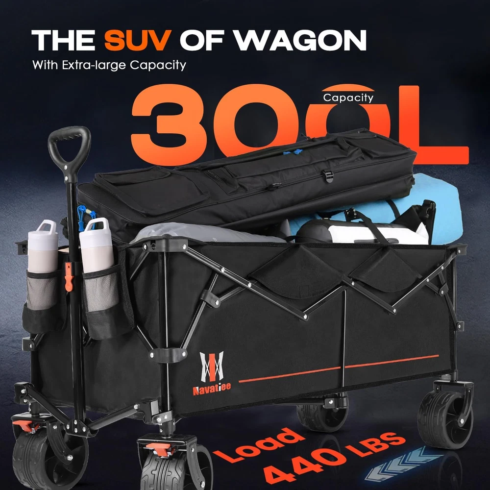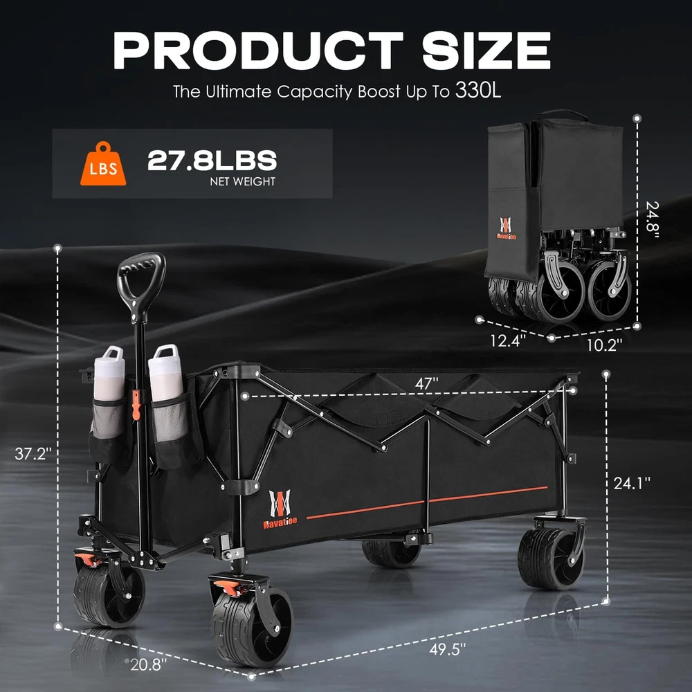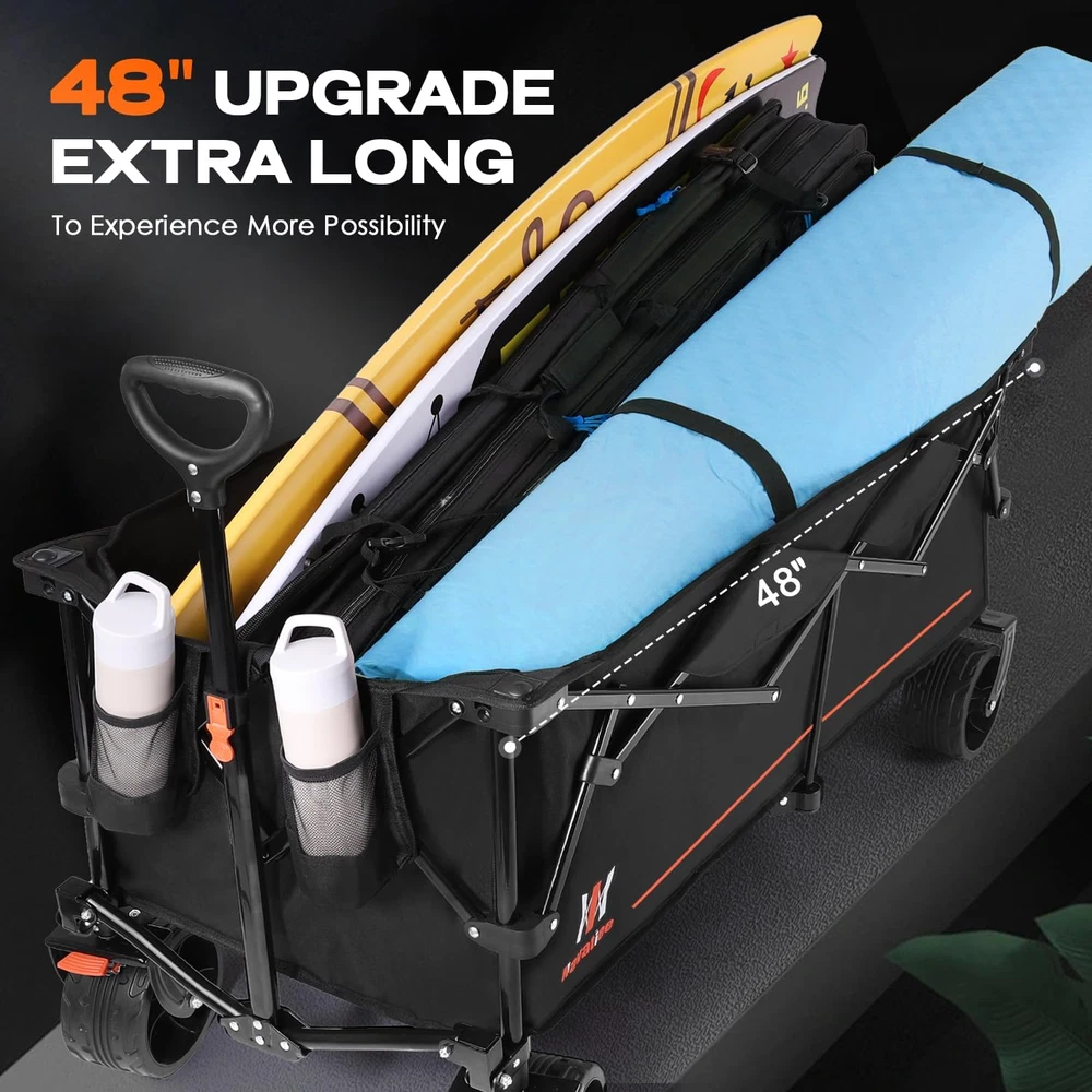 300L Large Collapsible Wagon Cart Foldable, 48''L Folding Extended Beach Wagon w