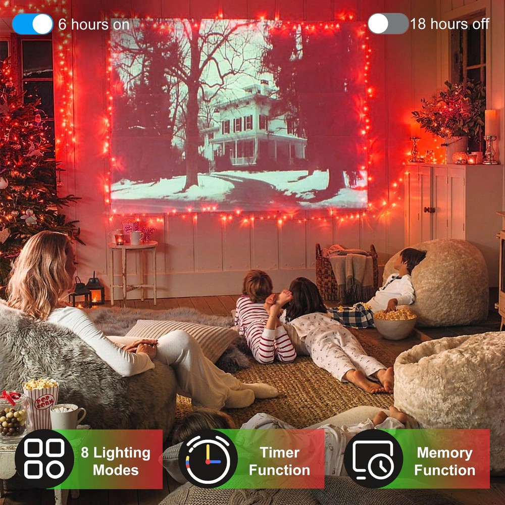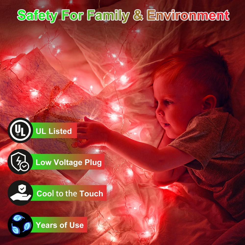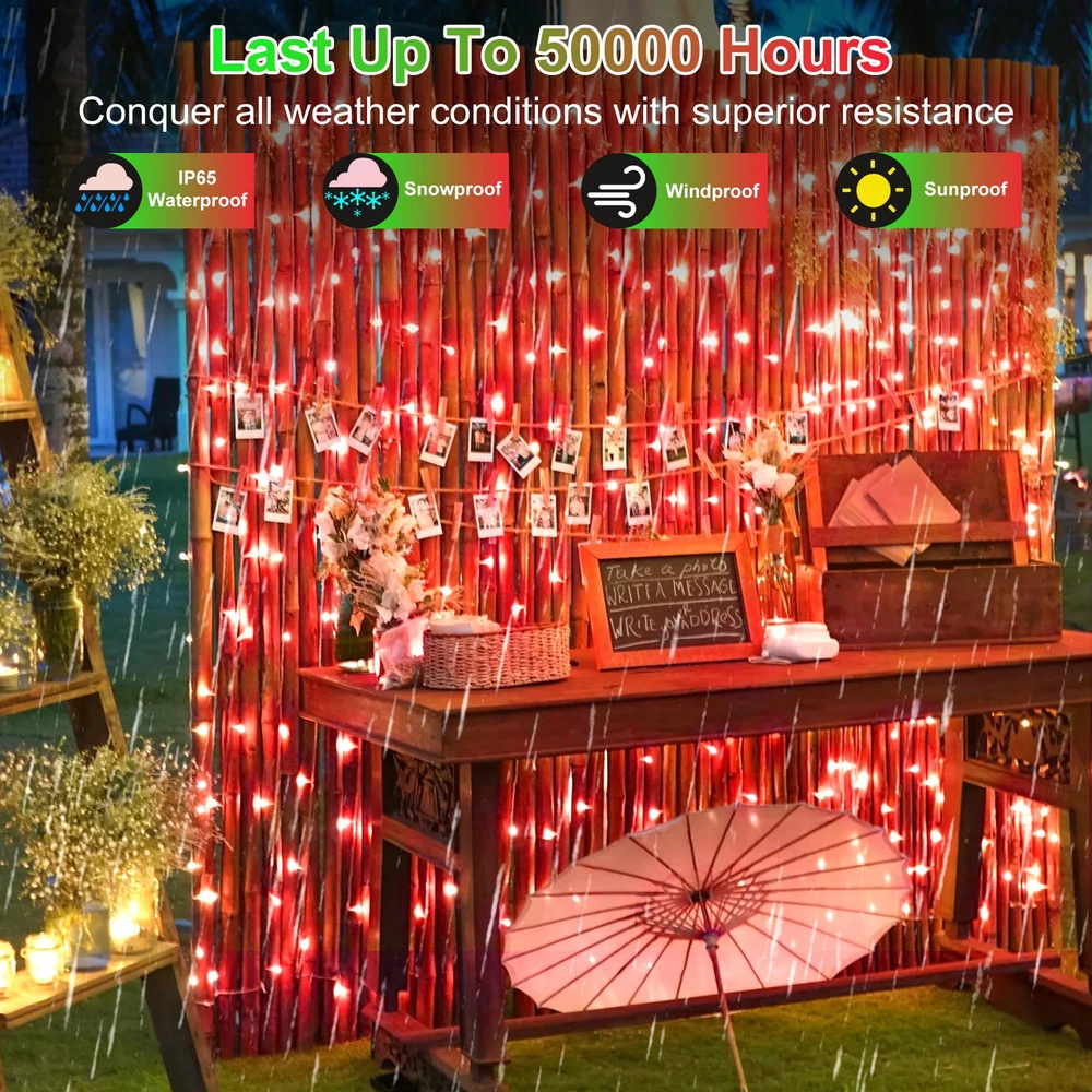 🌟Upgrade Your Outdoor Ambiance: Elevate your outdoor gatherings and celebrations with our 100FT 300 LED Christmas String Lights, designed to add a touch of charm and warmth to your spring and summer evenings. Featuring faceted cone lenses for enhanced brightness and color, these lights create a serene and inviting atmosphere. You can transform any environment into a magical realm, whether it's a cozy indoor setting or a spacious outdoor oasis, impressing your guests. 💡Versatile Lighting Options: Create a customized lighting display with 8 captivating modes to choose from, including Combination, In waves, Sequential, Slo-glo, Chasing/flash, Slow fade, Twinkle/flash, and Steady on. The built-in timer and memory functions make it easy to set the perfect ambiance for any occasion, ensuring hassle-free operation every time. 🔗 Connect Anywhere: Our LED outdoor string lights offer end-to-end connectivity, allowing you to connect up to 4 sets of lights. With a maximum of 1200 LEDs and 400FT coverage, you can effortlessly extend your lighting display across larger areas. Create impressive decorative designs by linking multiple sets of lights together. Illuminate your space including railings, house outlines, garden fences, interior beams, courtyard trees, window accents, porch décor, and grand event spaces. 🌺Safe and Weatherproof: Our LED fairy twinkle lights are cool to the touch and energy-efficient, ensuring a safe and environmentally friendly lighting choice. Designed for year-round outdoor celebrations, these weather-resistant lights are built with high-quality materials and IP44 Weatherproof-Tech to withstand rain, snow, and other elements. Whether it's a summer BBQ or a spring garden party, rest assured that these lights will continue to shine brightly, no matter the weather. 🌞12-Month and Exceptional Customer Support: Backed by a 12-month , our product guarantees quality and durability for your outdoor lighting needs. Our dedicated customer support team is available to assist you with any inquiries or issues, providing prompt responses within 24 hours. Create lasting memories under the warm glow of our 300 LED 100FT String Lights this spring and summer season!