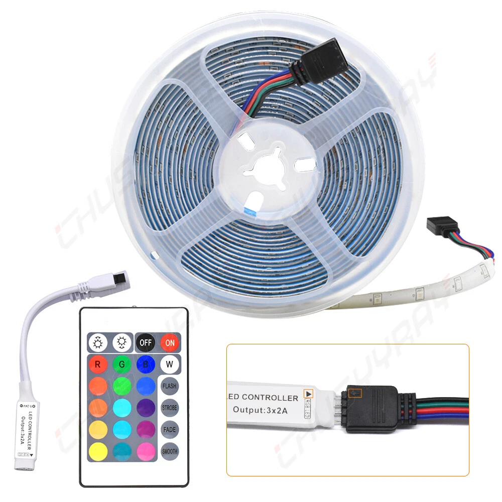 SMD 2835 RGB Led Strip Light (This package does not include power supply ) (Please contact us if you need power) Description: Color: RGB (Red Green Blue) Flash SMD View angle: 120° Length: 5 m Cuttable: Every 3 LEDs Supply voltage: DC 12VOperating temperature: -20 to 60 degree LED quantity: 30LEDS/m, 150 LEDs Lifetime: 50,000+ hours Working Temperature: -20°C-60°CInput/Output: 12V Product Features: Maintenance free, easy intallation Ultra-bright but running at low temperature 6 DIY keys for memorizing 6 Color settings Long life 50,000 hours,Low power consumption Ultra-bright but working at insufficient temperature Self-adhesive back with Adhesive tape for secure and easy application Every 3-LED cutable without damaging the rest strip ,according to your requirement Superb 2835 SMD LED, High Intensity and Reliable.Fully smooth and even diffuse light, solving the uneven light problem Ribbon Flexible curve around curves,Flexible LED strip 8 Light Pattern: Quick / Slow / Auto / Flash / 7 color fade change / 3 color fade change / 7 color jumpy change / 3 color jumpy change R / G / B increase and decrease control Application: Ideal for decoration of construction lines, landscape lighting, theme entertainment,Holiday sculpture of light, decorative figure, active signs, displays, showcasesAnd showcases, bar, disco, street, sidewalk, bridge, park, porch, staircase, railing, ceiling, Package includes: 1x Waterproof 5M Light Strip 1x LED Strips Wireless Remote Control System (This package does not include power supply) On Dec 16, 2024 at 22:19:49 PST, seller added the following information: