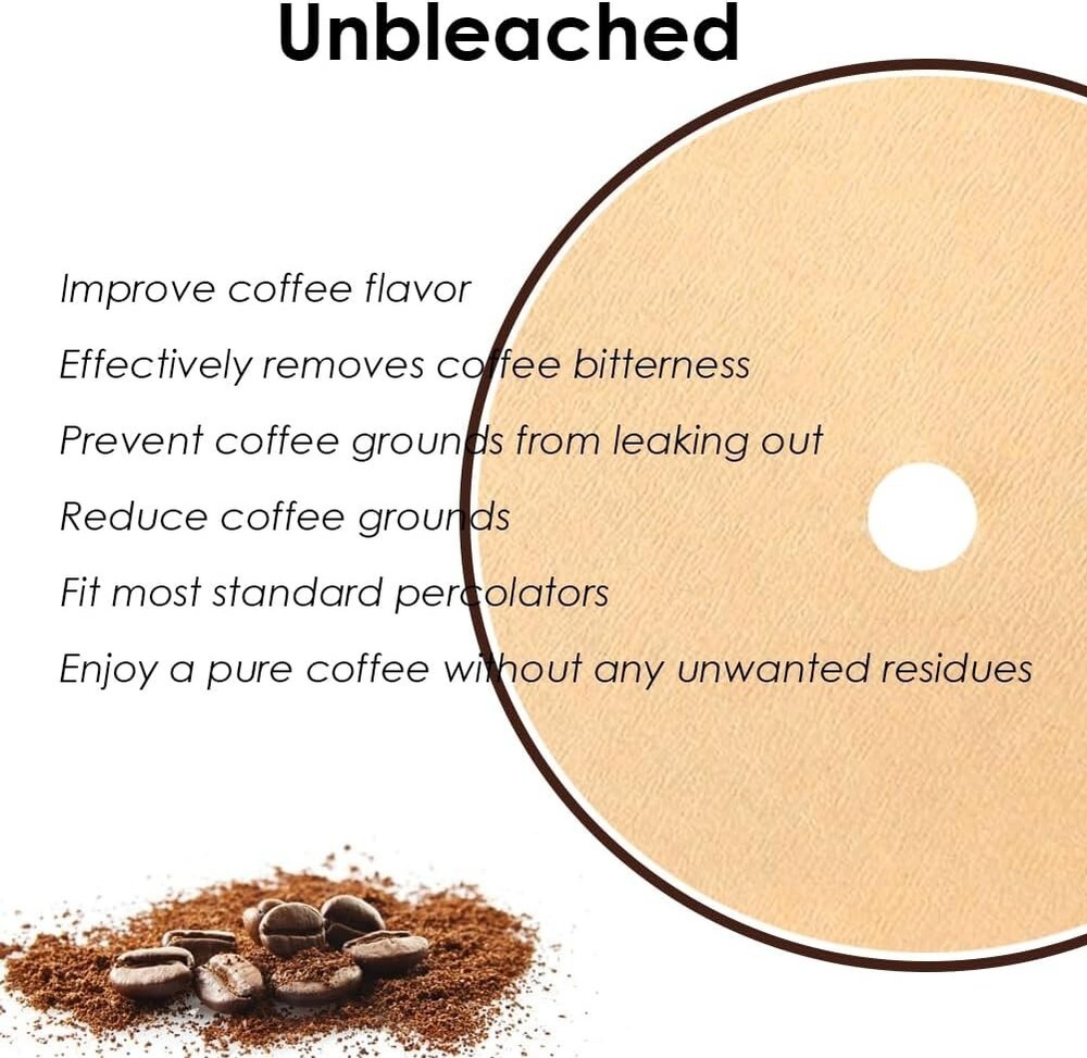 Percolator Coffee Filters - 300PCS 3.75in Disc Coffee Filters for Percolator About this item: PERCOLATOR COFFEE FILTERS: These unbleached percolator coffee filters are crafted from high-quality materials to ensure coffee's full flavor through while trapping bitter grounds & oils. DISK DESIGN: Mimore disc coffee filters are designed to brew rich, flavorful coffee. These percolator coffee filters 3.75 are designed to lay flat on most standard percolators. QUALITY PERCOLATOR FILTERS: Made without bleaching agents, these disc coffee filters are an environmentally conscious option for coffee lovers who care about sustainability. Chlorine free. PERFECTBREWING: Our 3.75 coffee filters are designed to provide theperfect brewing experience. They are all compostable & made of high quality paper that won't tear for mess-free brewing. BETTER TASTING: These percolator coffee pot filters are designed for hassle-free brewing, allowing you to enjoy your favorite coffee without the mess and fuss of traditional methods.