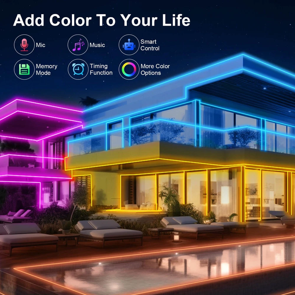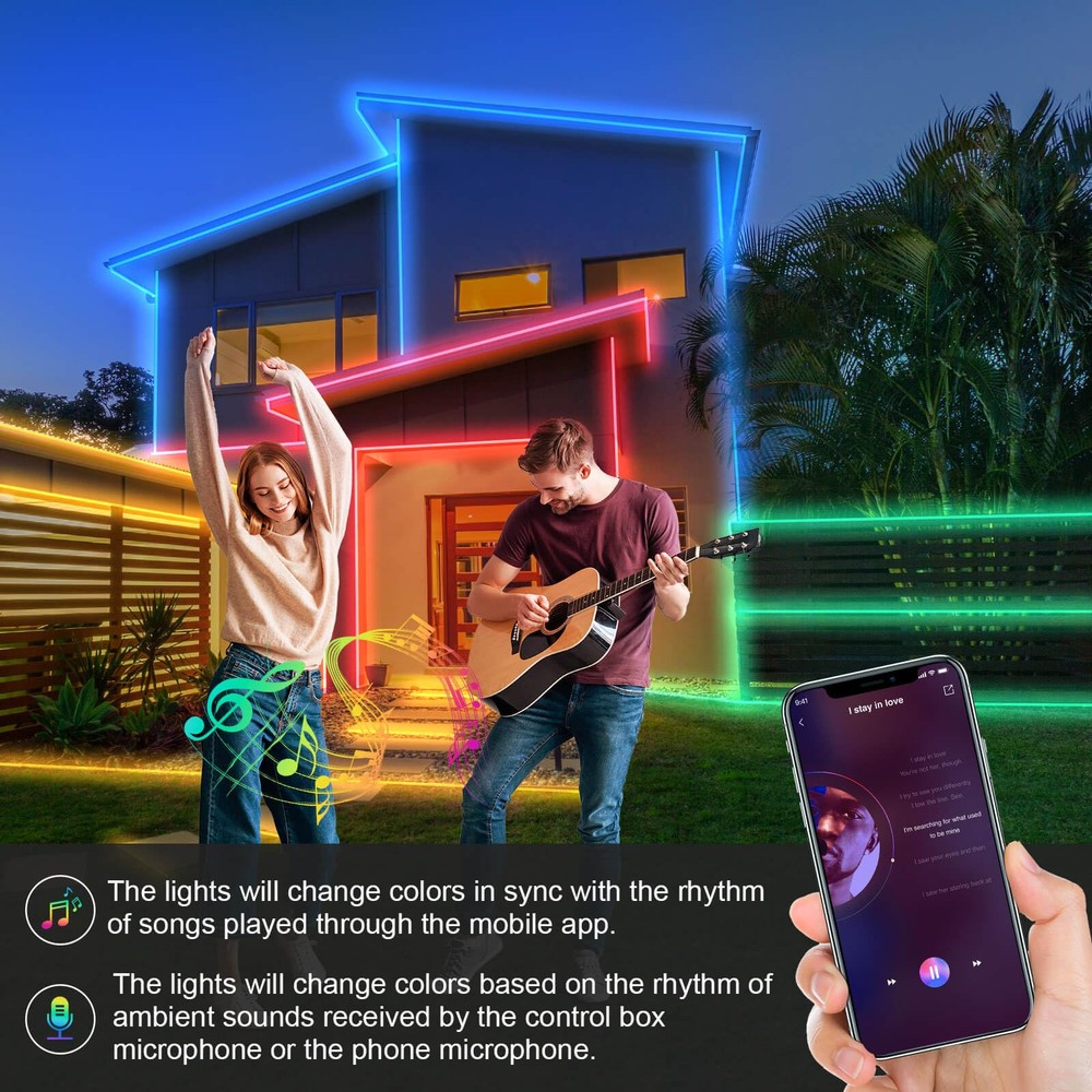 300ft Waterproof Outdoor LED Strip Lights with Music Sync & Color Changing