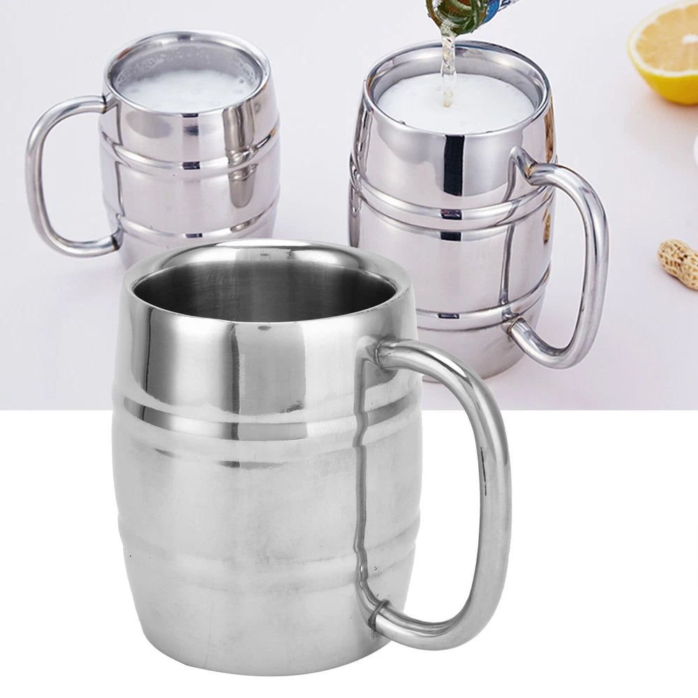 Feature: 1. This high quality stainless steel beer mug designed with a convenient handle for easy grip. 2. Made from the high quality stainless steel, which is durable and wear-resistant. You'll use this metal beer mug for years and years. 3. The double wall and thicken design is more durable and can prevent spillage, you will not worry it will spill easily. 4. Excellent for all kind of beer, its also great for cocktail, juices, milk, water, tea and coffee, afternoon drinks, milkshake, lemonade, breakfast drinks. 5. This beer mug makes the perfect gift for anyone enjoys drinking beer or who enjoys hot drinks while on the move, which can be used as coffee cup, beer cup, water cup, etc Specification: Item Type: Beer Mug Material: 304 Stainless Steel Weight: Approx. 204g/7.1oz Capacity: 300ml Application: Suitable for cocktail, juices, milk, water, tea, coffee, afternoon drinks, milkshake and lemonade Package List: 1 x Beer Mug Note: Monitors are not calibrated same, item color displayed in photos may be showing slightly different from the real object. Please take the real one as standard.