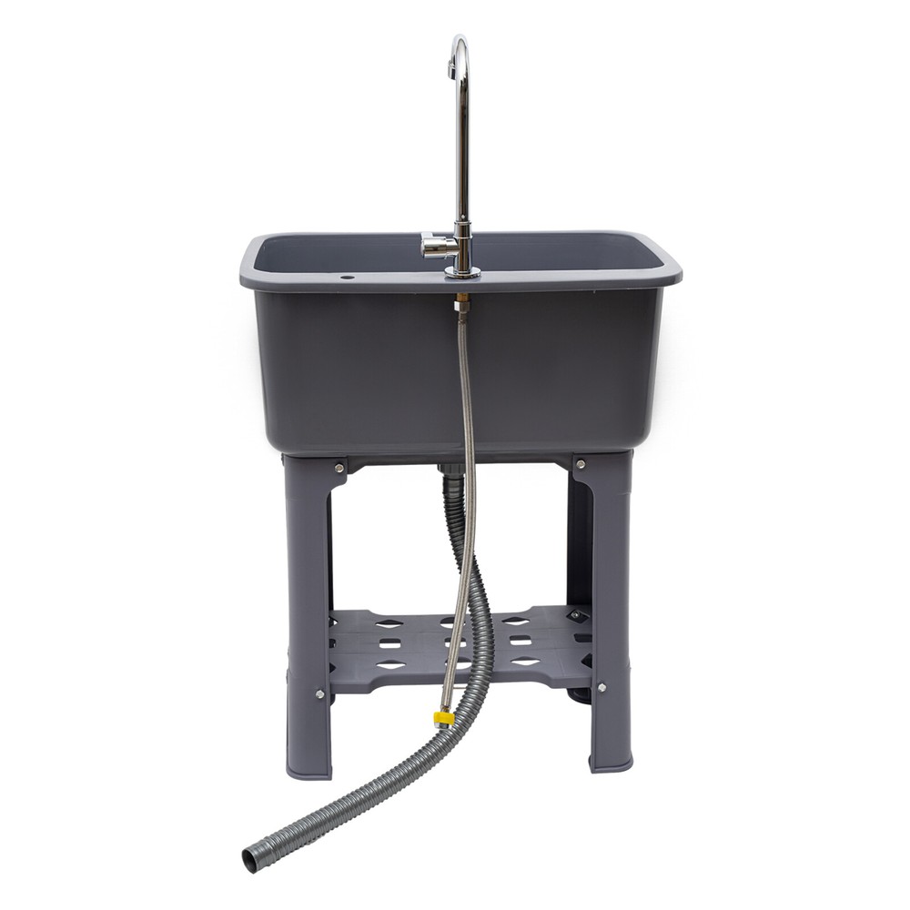 Specifications Color: Gray Material: PP Style: Modern Process: Inject Molding Assembly Required: Yes Mounting Type: Freestanding Faucet Opening: Single Hole Faucet Single Hole Diameter: About 2.6cm/1.02in Base Type: Legs Number of Sinks: 1 Load-bearing Capacity: About 50kg/110.23lbs Drain Pipe Diameter: 3cm/1.18in Volume: 48L/12.68gal Faucet Adjustable Angle: 360° Water Inlet Pipe: 60cm/23.62in Drain Pipe Length: 77cm/30.31in Faucet Height: 31cm/12.2in Leg Height: 49.5cm/19.48in Sink Inner Size: 56*32*26cm/22.05*12.6*10.24in Overall Product Size(Not Including Faucet): 60*40*76.5cm/23.62*15.75*30.12in Package Included 1*Utility Sink 1*Faucet 1*Washboard 1*Inlet Pipe 1*Drain Pipe All Accessories for Assembly Freestanding Plastic Utility Sink Laundry Tub Laundry Sink with Faucet Grey NEW Description With its 360° rotating faucet and premium PP material, this freestanding utility sink is an excellent cleaning tool. Its deeper and larger sink reduces splashing while simultaneously making better use of available space. Meanwhile, it's easy to install thanks to its straightforward design and full complement of attachments. It's ideal for laundry rooms, baths, and minimalist kitchens because of its smart design and modern appearance. Key Features Beautiful Appearance: The gray color scheme gives the product a high-end and minimalist look, which can adapt to a variety of different decorating styles and add more stylishness to your room. User-friendly Design: The 30.12 " overall height( not including the faucet ) and 10.24 " depth of the sink reduce the frequency of bending and the burden on your waist. High Stability: Thickened material, four supporting lage, stable rectangular structure, strong screw fixation, and reinforcing rib make its weight capacity up to 110.23 lbs, making the product more stable and safer to use. Build to Last: It is made of high-quality PP material and adopts an injection molding process, which makes the product wear-resistant , corrosion-resistant , sturdy and durable, and not easy to rust. Large Cleaning Space: The large inner size of the sink( 22.05*12.6*10.24in ches) allows you to clean large amounts of clothes and wash pet cats and dogs inside. Quick Drainage: The large-diameter drainage outlet(1.18inches), porous design, and long drain pipe(max. up to 30.31 inches) allow for faster and better water drainage without clogging. Complete Set: This complete sink kit includes a sink, a faucet, a drain pipe, a water inlet hose, a washboard, and a complete line of accessories, so you don't have to buy them separately, making it more economical and convenient. Easy to Install: Its simple structure, standard threaded connector, and complete installation accessories allow you to easily complete the installation in a short time. Effortless Cleaning: The smooth surface provided by high-quality materials and craftsmanship, and simple structure allow you to easily clean the dust with water and a soft towel! Details Washboard: The washboard with a soap slot has a tightly toothed surface pattern for better stain removal. Rounded Corner: The four corners of the sink are machined to be rounded for better protection from collisions. Anti-slip Feet: The wider non-slip feet increase the contact area with the ground and effectively play a non-slip role, thus providing more stable support for the product. Ample Bottom Space: You can put large bottles of laundry detergent, small baskets, washbasins, and other items in the bottom space to make smart use of space. Practical Faucet : This 360° rotatable high faucet with a comfortable handle allows you to easily adjust the water flow, achieve dead-end cleaning , and provide you with enough washing space and flexibility. Application It is suitable for cleaning clothes, pets, pots and pans, fruits, vegetables, meat, etc. in restaurants, laundries, stores, utility rooms, laboratories, canteens, cafes, gardens, warehouses, bars, dessert shops, garages, and other commercial places. Specifications Color: Gray Material: PP Style: Modern Process: Inject Molding Assembly Required: Yes Mounting Type: Freestanding Faucet Opening: Single Hole Faucet Single Hole Diameter: About 2.6cm/1.02in Base Type: Legs Number of Sinks: 1 Load-bearing Capacity: About 50kg/110.23lbs Drain Pipe Diameter: 3cm/1.18in Volume: 48L/12.68gal Faucet Adjustable Angle: 360° Water Inlet Pipe: 60cm/23.62in Drain Pipe Length: 77cm/30.31in Faucet Height: 31cm/12.2in Leg Height: 49.5cm/19.48in Sink Inner Size: 56*32*26cm/22.05*12.6*10.24in Overall Product Size(Not Including Faucet): 60*40*76.5cm/23.62*15.75*30.12in Gross Weight: 6.1kg/13.45lbs Net Weight: 5.5kg/12.13lbs Package Size: 61.5*41*31.5cm/24.21*16.14*12.4in Package Included 1* Utility Sink 1*Faucet 1*Washboard 1*Inlet Pipe 1*Drain Pipe All Accessories for Assembly Notes Please allow the slight color difference caused by the shooting light and 1-3cm error due to manual measurement, and make sure you do not mind before you order. Payment Delivery details Terms of sales About us Contact us Payment We accept ebay payment 。 Fees such as import duties, taxes are not included in the item price or shipping costs. These charges are the buyer's responsibility. Delivery details Shipping: 2-9 working days to: USA Terms of sales We maintain high standards of excellence and strive for hundred percent customer satisfaction. Feedback is very important to us. We hope that you contact us immediately before you give neutral or negative feedback, so that we can address your concerns. It is impossible to address issues if we do not know about them! About us Your satis faction is our ultimate goal. We work hard to earn your trust and future business. Our certified technicians have tested each item before shipping. The unit comes with 1 year limited warranty on all manufacturing defects. a) If you receive a defective item, you may return it or ask for a discount. Please contact us within 14 days after you receive the package. b) What you retu