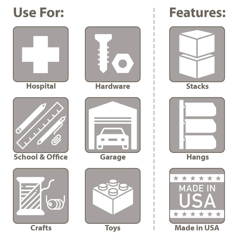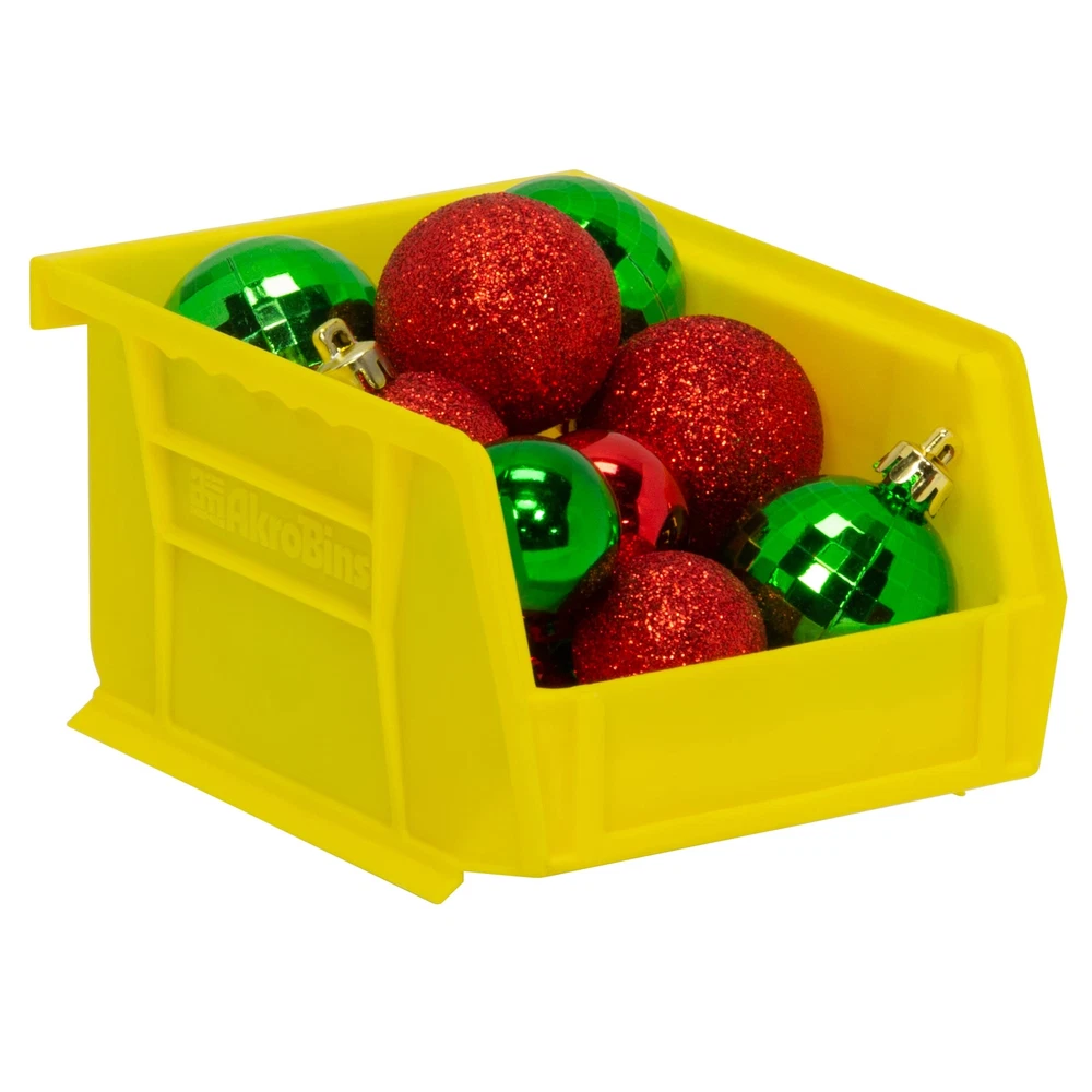The 30210 AkroBins Plastic Stackable Storage Organizer Bin is a versatile solution for all your storage needs. Crafted from heavy-duty, -piece industrial plastic, these bins are built to last, offering rust, water, and corrosion-proof durability. Perfect for classrooms, garages, and craft supplies, each bin can hold up to 10 pounds, making them ideal for organizing small toys, cosmetics, small game pieces, office supplies, or hardware. Designed with efficiency in mind, these stackable bins maximize your closet and workspace while keeping items neatly organized and easily accessible. The extra-wide stacking ledge provides stability, saves space and prevents spills, while the anti-slide stop prevents stacked bins from shifting forward. Reinforced side ribs add strength and prevent spreading when stacked. A curved-bottom hopper front makes it easy to retrieve small items. They are small enough to fit in desk drawers (check height of drawer first). For a truly customized organization experience, consider optional dividers to create customizable compartment sizes and label holders (sold separately) to tailor each bin to your specific needs. The large front label area supports easy coding and scanning. Transform your space with the AkroBins—where durability meets versatility. MULTI-PURPOSE STORAGE BINS: These stackable storage bins hold up to 10 pounds and are great for classrooms, garage storage, pantries, craft storage, bathrooms; Use them to cosmetics, office supplies, small toys, or hardware DURABLE ORGANIZATION: Crafted from heavy-duty, -piece industrial plastic, these bins are rust, water, and corrosion-proof; Reinforced side ribs add strength and prevent spreading; Each storage bin is easy-to-clean and can be used indoors or outdoors SPACE-SAVING DESIGN: These stackable plastic bins maximize storage space; Extra-wide stacking ledge provides stability, saves space and prevents spills; Anti-slide stop prevents stacked bins from shifting forward CUSTOMIZABLE ORGANIZATION: Optional dividers and label holders (sold separately) let you tailor the heavy duty storage bins to your specific needs for any project or space; They also can be used with louvered panels or rail racks (sold separately) STACKING BIN DIMENSIONS: Outside Dimensions - 5-3/8" x 4-1/8" x 3"; Inside Dimensions - 4-3/4" x 3-7/16" x 2-13/16"; They fit in many desk drawers (check height of drawer first); Proudly made in the USA