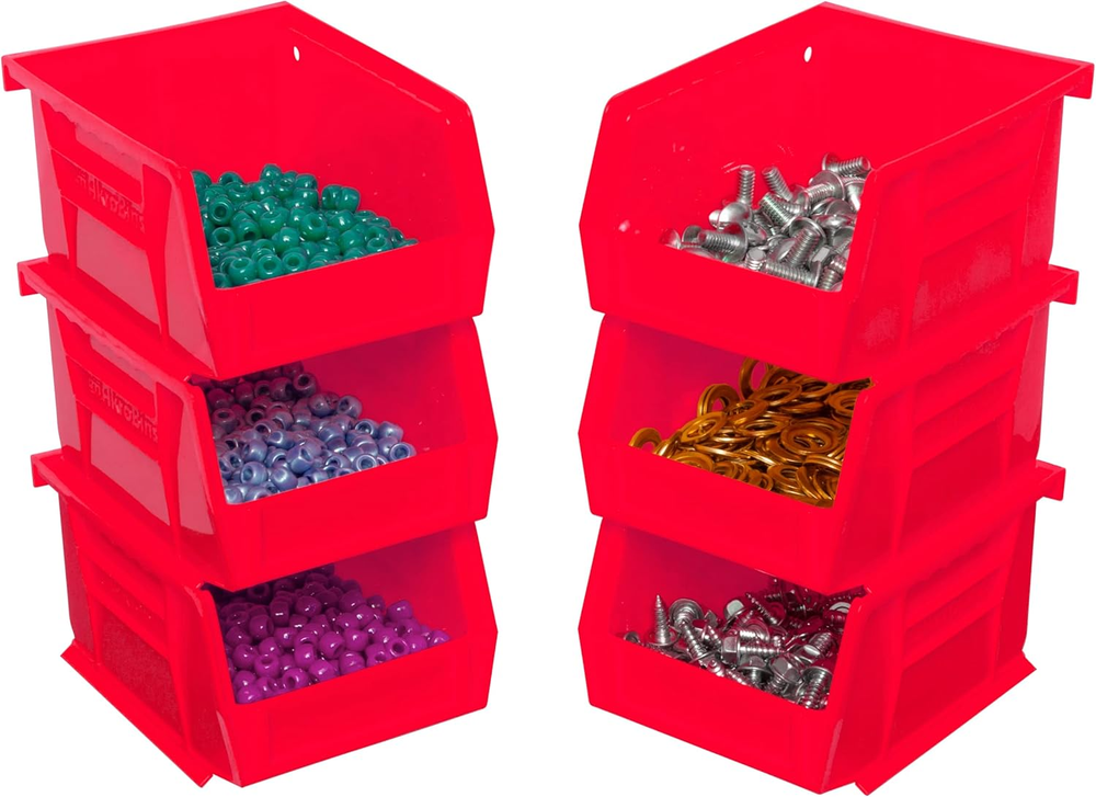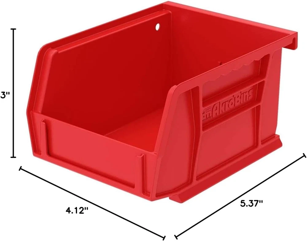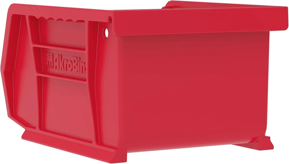 MULTI-PURPOSE STORAGE BINS: These stackable storage bins hold up to 10 pounds and are great for classrooms, garage storage, pantries, craft storage, bathrooms; Use them to store cosmetics, office supplies, small toys, or hardware DURABLE ORGANIZATION: Crafted from heavy-duty, one-piece industrial plastic, these bins are rust, water, and corrosion-proof; Reinforced side ribs add strength and prevent spreading; Each storage bin is easy-to-clean and can be used indoors or outdoors SPACE-SAVING DESIGN: These stackable plastic bins maximize storage space; Extra-wide stacking ledge provides stability, saves space and prevents spills; Anti-slide stop prevents stacked bins from shifting forward CUSTOMIZABLE ORGANIZATION: Optional dividers and label holders (sold separately) let you tailor the heavy duty storage bins to your specific needs for any project or space; They also can be used with louvered panels or rail racks (sold separately) STACKING BIN DIMENSIONS: Outside Dimensions - 5-3/8" x 4-1/8" x 3"; Inside Dimensions - 4-3/4" x 3-7/16" x 2-13/16"; They fit in many desk drawers (check height of drawer first); Proudly made in the USA The Akro-Mils 30210 AkroBins Plastic Stackable Storage Organizer Bin is a versatile solution for all your storage needs. Crafted from heavy-duty, one-piece industrial plastic, these bins are built to last, offering rust, water, and corrosion-proof durability. Perfect for classrooms, garages, and craft supplies, each bin can hold up to 10 pounds, making them ideal for organizing small toys, cosmetics, small game pieces, office supplies, or hardware. Designed with efficiency in mind, these stackable bins maximize your closet and workspace while keeping items neatly organized and easily accessible. The extra-wide stacking ledge provides stability, saves space and prevents spills, while the anti-slide stop prevents stacked bins from shifting forward. Reinforced side ribs add strength and prevent spreading when stacked. A curved-bottom hopper front makes it easy to retrieve small items. They are small enough to fit in desk drawers (check height of drawer first). For a truly customized organization experience, consider optional dividers to create customizable compartment sizes and label holders (sold separately) to tailor each bin to your specific needs. The large front label area supports easy coding and scanning. Transform your space with the AkroBins—where durability meets versatility.