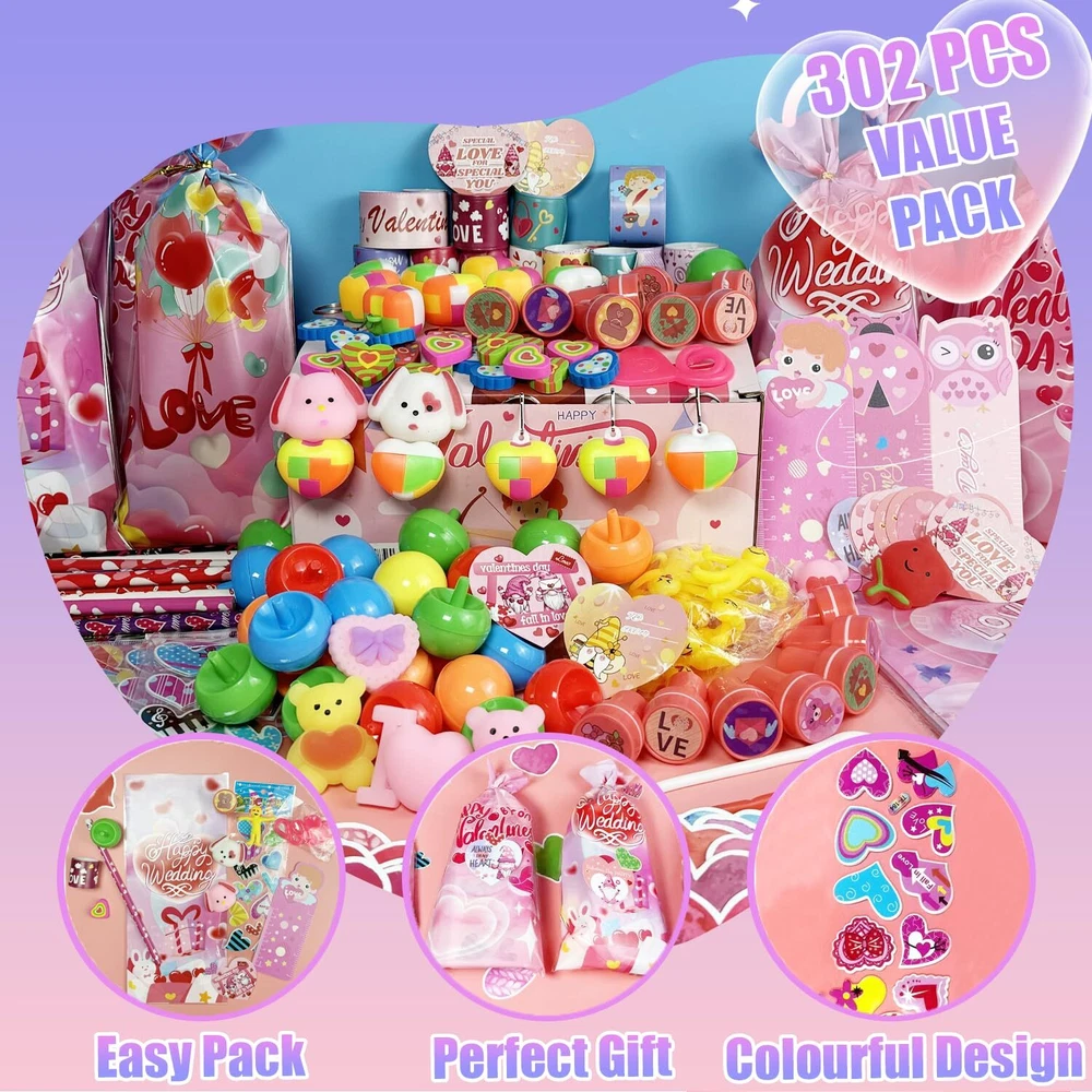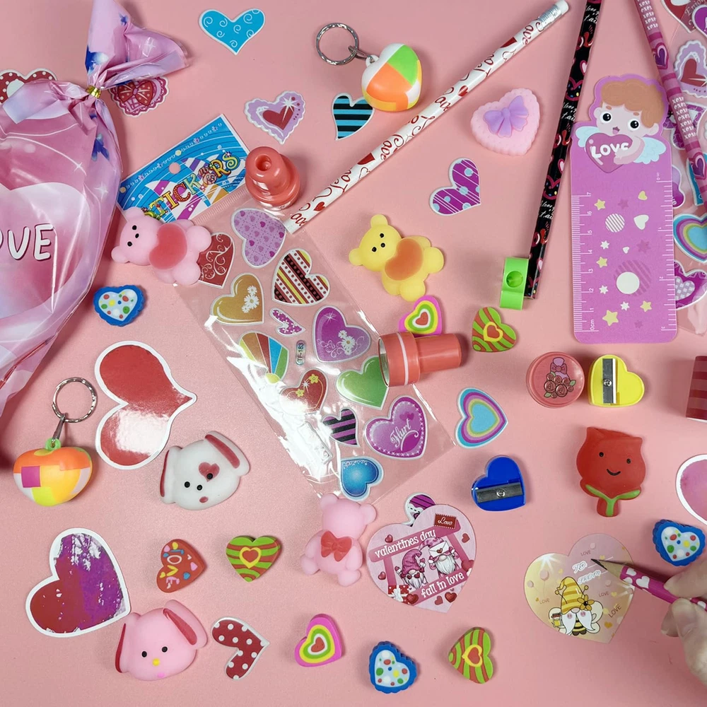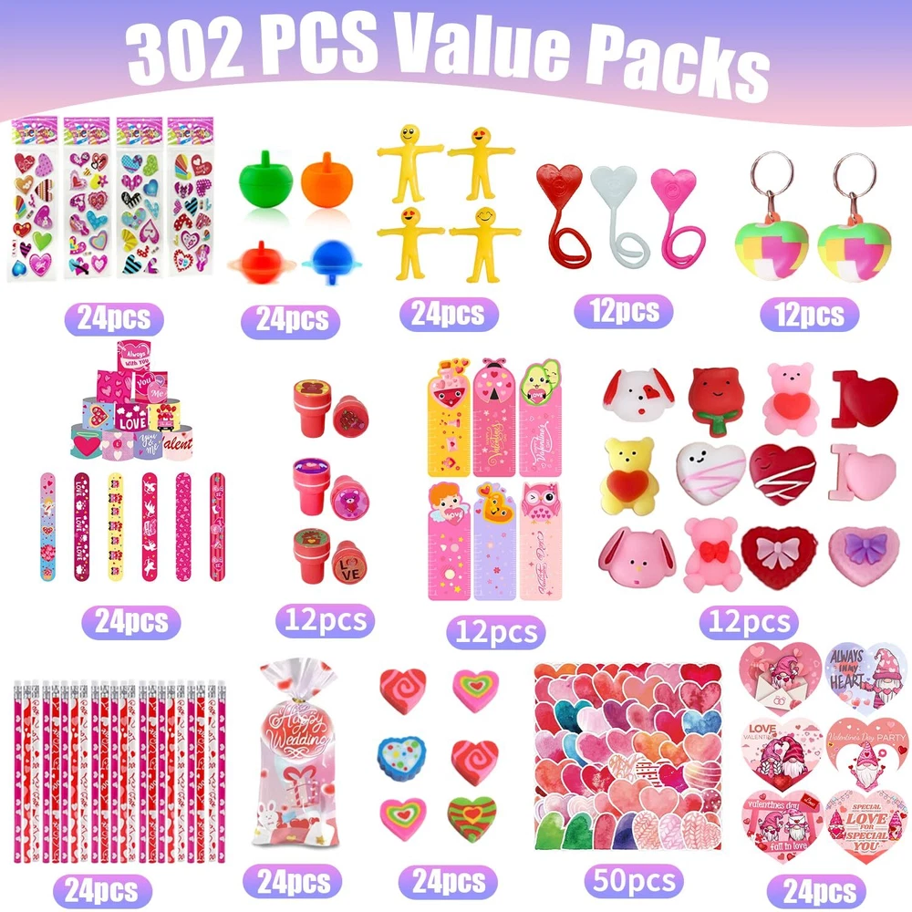 Creative Gift for Kids: Surprise your kids with this customized valentine day gifts, come in a variety of gifts: 24* pencils, 24* stamps, 24* erasers,24* Stickers, 24* slap bracelets, 24* greeting cards and 24 Goodies Bags etc. Put the little toy into the goodies bag form a gift, you will toally get 24 beautiful Valentines Day gift. Ideal Classroom Exchange Gifts: The Valentine's Day gift set is perfect for kids exchange gifts. Kids can write each other's names on our unique design gift cards to show their love and express their special friendship. It can bring the fun of sharing, help children make new friends. Party Favors for Kids: Kids can put these gifts into 24 valentine’s goodies bag, put the pencils stamps and erasers or toys into the bag. Then write a message on a greeting card and send it to their friends at the valentine party to share the fun and develop their hands-on and social skills. High Quality and Safety: The Valentines gifts for kids are are made of safe plastic, wood, non-toxic. which are durable and friendly for kids using and playing. We believe it will give your children a wonderful and unforgettable Valentines Day. Children’s Valentine’s Day Gift: Can be used as Valentine's Day party, exchange gift, children's classroom Valentine's Day gift, children's Valentine's Day card, Valentine's Day party favors, Valentine's Day pencils, Birthday gift and so on!