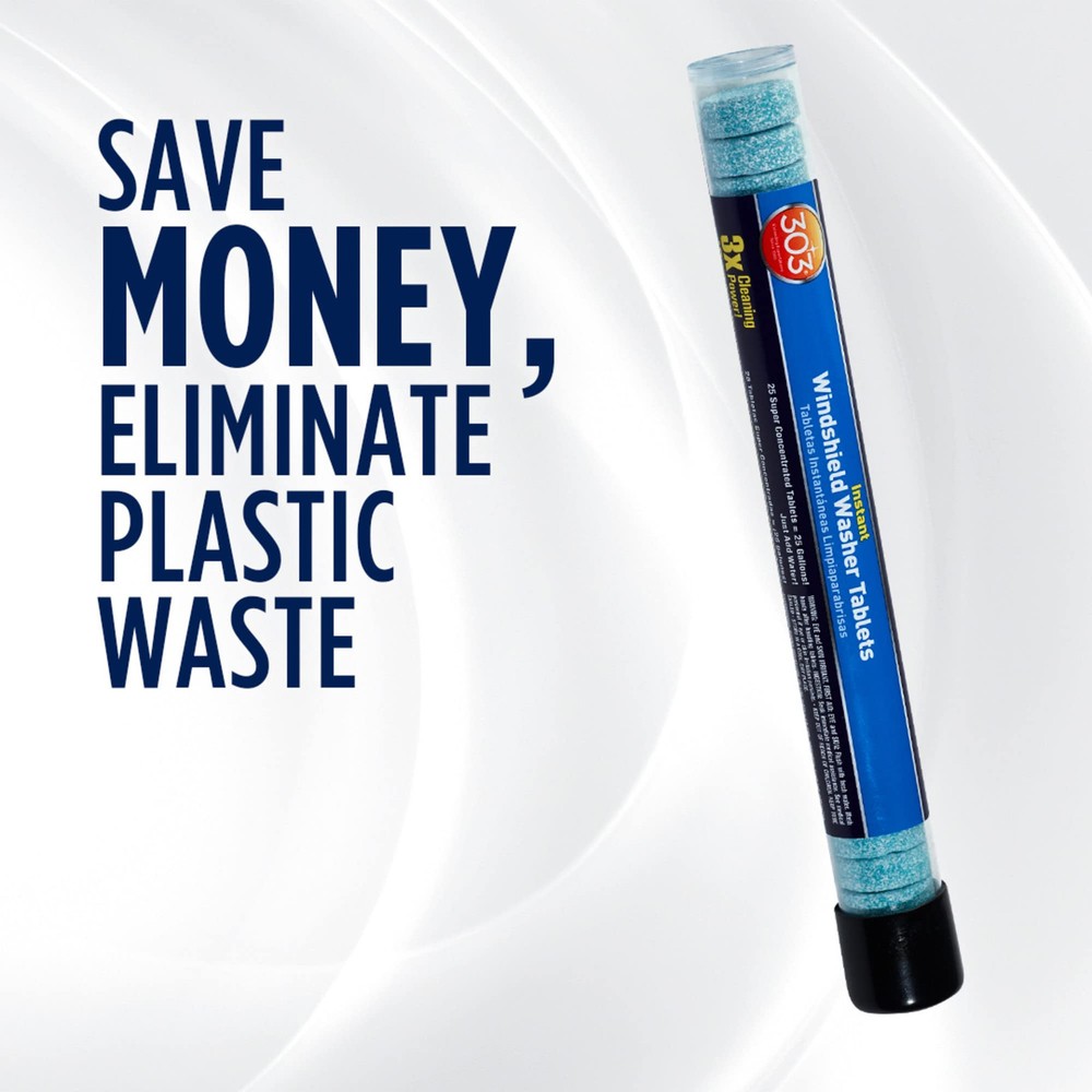 303 Instant Windshield Washer Tablets are formulated to completely remove road film, dirt and grime leaving windshields sparkling clean. Each super-concentrated tablet makes up to 1 gallon of windshield cleaner. Simple, drop tablet in reservoir of clean water or add tablet to a gallon of water. Non-toxic, biodegradable, safe for rubber and paint. Super-concentrated with 3 times the cleaning power of ordinary wash Each tablet makes 1 gallon of top quality cleaner Easy to use, simply add 1 tablet to 1 gallon of water or drop in reservoir of clean water Dissolves completely to remove bugs, road film, dirt, and grime Leaves windshields sparkling clean