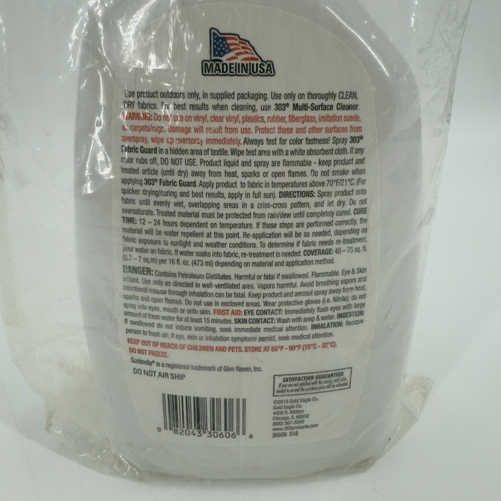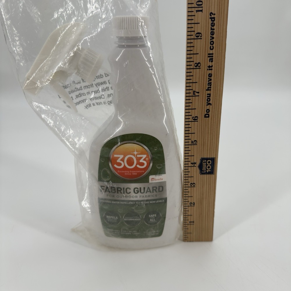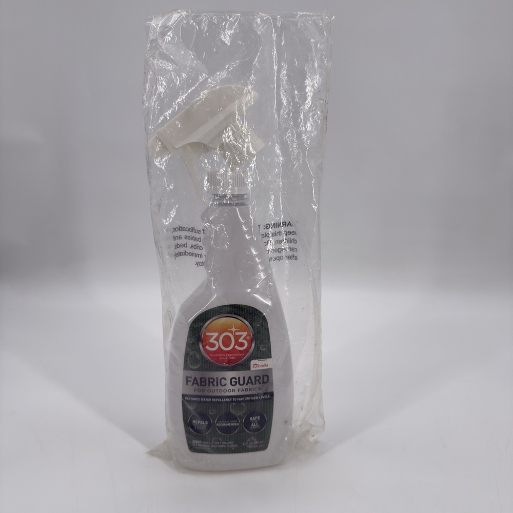 303 Marine Fabric Guard is a large 32 oz water repellent protectant specifically designed for all fabrics. This product, made by 303 Products, is ideal for safeguarding fabrics from water damage and stains. With a convenient size of 32 fl oz in a pack of 1, this product is easy to use and effective in keeping your fabrics looking new for longer. Made in a sleek white color, this fabric guard is a must-have for anyone looking to protect their fabrics from the elements. New in package. This is the larger 32 oz bottle.