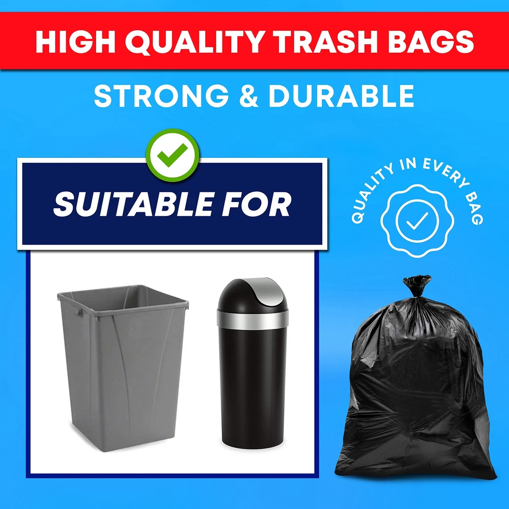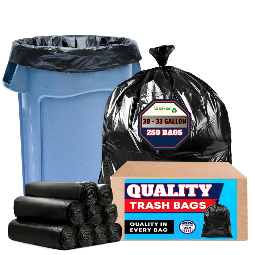 30-33 Gallon Trash Bags Heavy Duty (MegaValue Pack 250 Bags) Large Black Garbage Bags 30 Gallon - 32 Gallon - 33 Gallon- 35 Gallon. High Density Bags High density bags. These extra large garbage bags are made from high density plastic materials, perfect for holding all your light and medium weight trash. Durable 33 gallon trash bags can be used at home, at the office, or as outdoor trash can liners. 33" x 40" 16-micron. Durable material. The tear and puncture-resistant plastic is both thick and able to stretch, making it ideal for accommodating all of your clean-up and storage needs. 33 gallon large: Keep your cans clean - our large trash bags are just the right size for lining your trash cans, rollaway bins, and drum cans. Come garbage day, just pull out the bag and you're good to go. Bag size. 33"W x 40"H. Holds 32-33 gallons. No job is too big, too bulky, or too smelly for these quality garbage bags. Are you tired of fussing around with those flimsy trash bags, which easily puncture and rip only to leave behind a mess? If so, these Black trash bags by Tasker are the perfect solution for you! They're big, they're strong and they can be used both indoors in the kitchen, garage, and outdoors for organizing, cleaning up, or landscaping. Shipping We offer FREE shipping on all orders! We ship within Three business days of payment, usually sooner. We use a selection of shipping services such as UPS, FedEx, USPS etc. We only ship to the lower 48 states, no APO/FPO addresses or PO Boxes allowed. Local pickups and combined shipping options are not provided at this time. Return You can return a product for up to 30 days from the date you purchased it. Any product you return must be in the same condition you received it and in the original packaging. Please keep the receipt. Payment We accept payment by any of the following methods: PayPal Please pay as soon as possible after winning an auction, as that will allow us to post your item to you sooner! Feedback Customer satisfaction is very important to us. If you have any problem with your order, please contact us and we will do our best to make you satisfied. Contact Us If you have any queries, please contact us via ebay. We usually respond within 24 hours on weekdays. Please visit our eBay store to check out other items for sale! Thank you for shopping at our store.