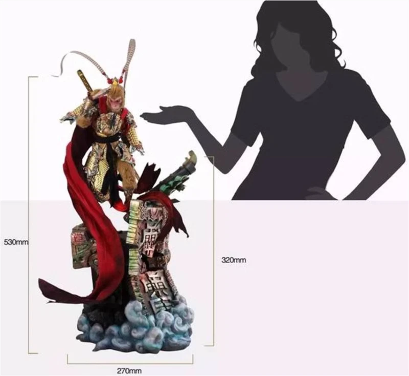 Size: 12 in Scale: 1:6 UPC: Does not apply gtin13: Does not apply Country of Origin: China Packaging: Original (Unopened) Theme: Journey to the West Character: Monkey King Item Length: 27CM Type: Action Figure Age Level: 17 Years & Up Material: Plastic Features: Adjustable Color: Multicolor MPN: Does not apply TV Show: Journey to the West Movie: Journey to the West Vintage: No Brand: Unbranded Item Height: 53CM Character Family: Journey to the West Model: Monkey King