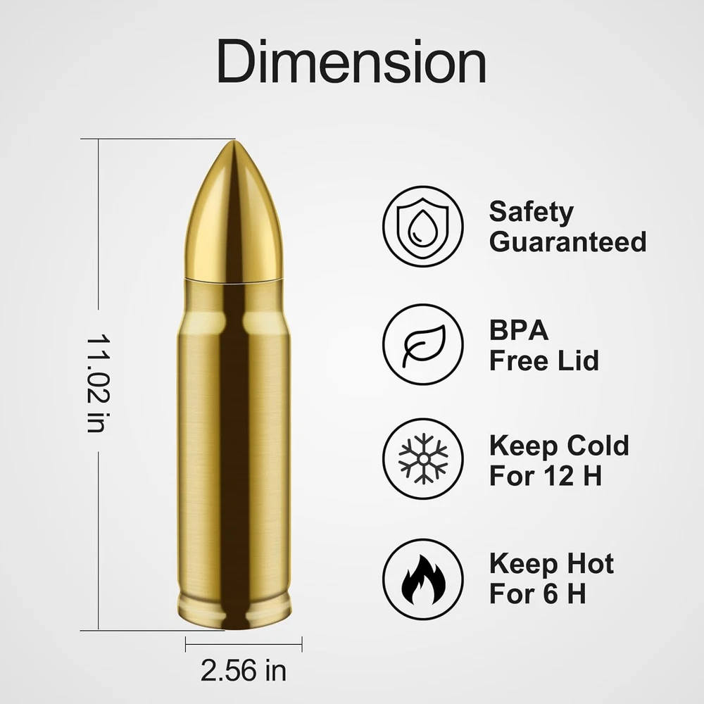 Store New Arrivals Add to Favorite View Feedback Contact 304 Stainless Steel Bullet Tumbler Shape Water Bottle 17 Oz 500 Ml Double Wall Vacuum Insulated Thermos Coffee Mug Insulated Flask Cup for Hiking Traveling Description Is Microwaveable No Capacity 500 Milliliters Number of Items 1 Color Gold Material Stainless Steel Is Dishwasher Safe No Item Weight 10.4 ounces Is Oven Safe No Theme Sport With Lid Yes Age Range (Description) Adult Cap Type Screw Cap Recommended Uses For Product Water, Tea, Coffee Special Feature Double Wall Product Dimensions 2.7"W x 9.3"H Product Care Instructions Hand Wash Only Included Components Lid Unique Water Bottle - Designed for adventurists, this bullet insulated water bottle brings the excitement and action of the great outdoors in a unique, functional way. Solid Color design without logo, image on the cup body to be customized as you like Capacity - 17 US fl oz (500 ml) in bullet ttumbler is the prefect size keeping your hydrated at work or at the gym and fitting in your bag easily. Please remove the desiccant pack inside before first use Vacuum Insulated - Afranti stainless water bottle features double-walled vacuum insulation preventing any outside temperature from affecting what is inside your bullet tumbler! Our bullet-shaped thermos keep your water cold on hot summer days for up to 12 hours and your coffee, tea, or hot chocolate hot on cold winter days for up to 12 hours. A big bonus if you fit some ice cubes in it in hot summer Spill-Proof - Afranti Bullet Thermos comes with a leak-resistant cap, stopping all leakage and spills. Whether you're placing this bullet tumbler inside your bag or putting it on your desk, your valuables will be kept dry during accidental bumps. It also featuring a snap-back cap so the drinking spout doesn't pinch you when you take a drink! Multipurpose - The bullet tumbler is suitable for everyday activities like camping, sports, outdoor and indoor work, beach, office, picnic, hiking, road trips, traveling, driving, backpacking, and more. Suitable for all ages, makes a great gift for anniversaries, birthdays, Valentine's day, Father's day, Christmas, festivals, and any other occasion. Product Description ----Specification---- Material: Cup Body - 304 Stainless Steel (Stamped on the bottom inside) Cup Cover - Food-grade PP & Silicone Sealing Ring Top Cover - Plastic Electroplated Size: 9.3 x 2.7 x 2.7 inch / 23.5 x 6.8 x 6.8 cm) Capacity: 17 US fl oz / 500 ml / 17.6 UK fl oz) Color: Gold, Black, Copper, Green, Sliver Package: 1 x 304 Stainless Steel Bullet Tumbler Please remove the desiccant pack inside and clean before first use. ABOUT US We offer the best prices around on high quality products. Our E-store includes media such as books, movies, music and games while offering electronics, toys, sporting apparel, clothing, tools, general home, garden items and more. SHIPPING We are always working hard to ensure your package arrives as soon as possible. Please understand that some factors like weather, high postal traffic, and the performance of shipping companies are outside of our control. We offer free shipping to the lower 48 states and ship within 2 business days of payment, usually sooner. We do not accept P.O. Boxes. Please provide a physical address. RETURNS We offer a 30-Day Return Policy on items which you are not completely satisfied with. You have the option for a full-refund or an exchange of the item. No returns are available on items shipped outside of the USA. PAYMENT We accept PayPal. CONTACT US This page content is yet to come Please ad us to your favorite seller and visit again later Thank You CUSTOMER SATISFACTION We try our very best to make sure every customer is completely satisfied. If there's a problem, message us! We're happy to help.