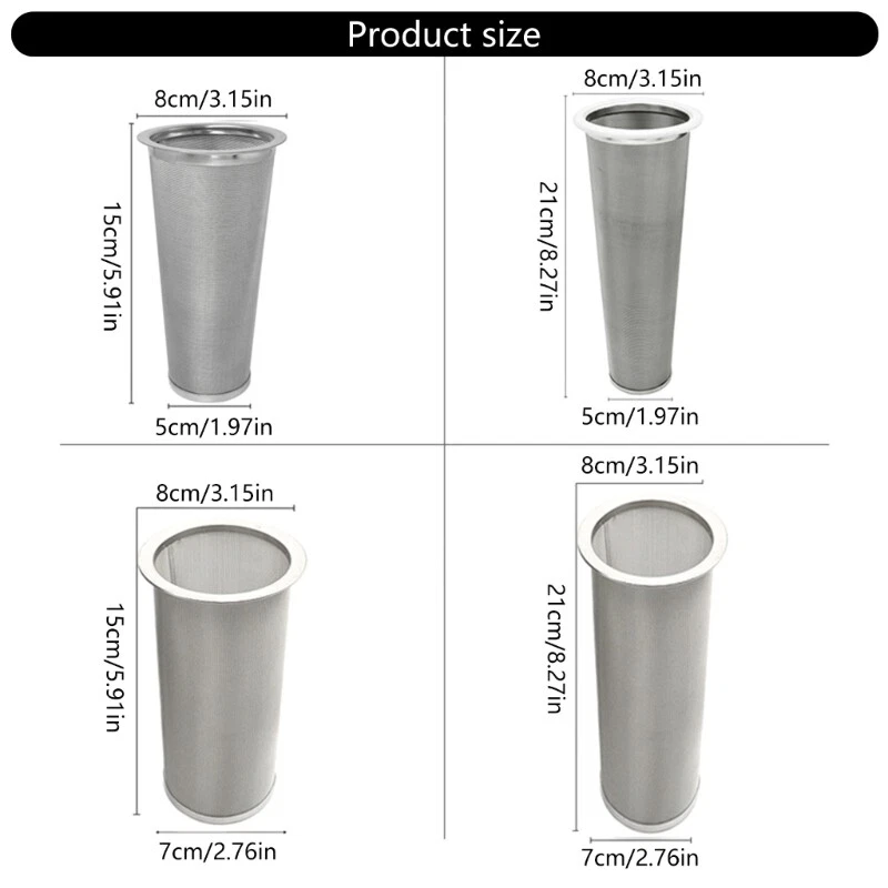 Features: Crafted from 304 stainless steel, this coffee filter ensures corrosions resistance and longevities while providing fine filtration. The cone/round shape designs perfectly fit wide mouth jars, making it easy to clean, promoting cost effective coffee brewing experience. Ideal for coffee enthusiasts, and small cafes, this filter caters to those seekings a high quality coffee experience. Perfect for homes brewed coffee, small coffee gatherings, or outdoor camping coffee preparation. Elevates your coffee making ritual with this premium filter, designs to enhances flavor. Specifications: Component:304 Stainless Steel Size: S:Approx.8x15cm/3.15x5.91inch L:Approx.8x21cm/3.15x8.27inch Package Includes: 1PC 304 Stainless Steel Coffee Filter note: 1.Please allow 1-2cm errors due to manual measurement, make sure that you donot mind before you order. 2.Due to the differences between different monitors, the picture may not reflect the actual color about the item.