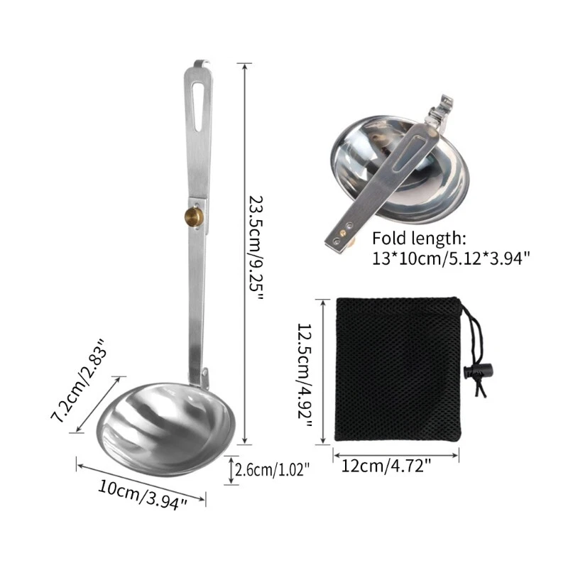 Features: Small size and light weight, easy carrying and storage, with hanging hook, convenient for kitchen shelf rack. Cooking spoon made of grade stainless steel, solid and durables, not easy to deforms, reliable to use for long service life. Its great for scooping and serving big portion, convenient for pots of soup or even bowls of Soup ladle foldable for easy storages, perfect for outdoor camping, barbecue, cooking and other outdoor activities. The stainless steel spoon is a good replacement option for the plastic tableware and it is easy to clean Specifications: Material: 304 Stainless Steel Weight: 105g Size: As picture shows Package Includes: 1x Folding Spoon note: 1.Please allow 1-2cm errors due to manual measurement, make sure that you do not mind before you order. 2.Due to difference between different monitors, the picture may not reflect the actual color of the item.